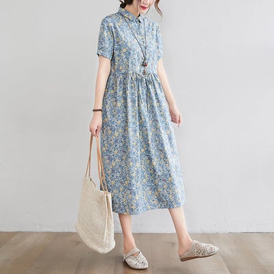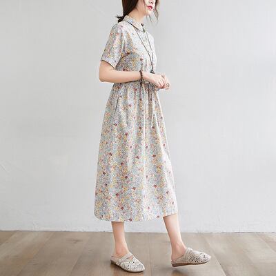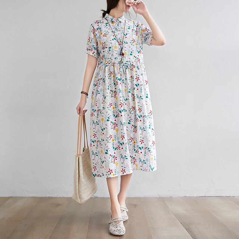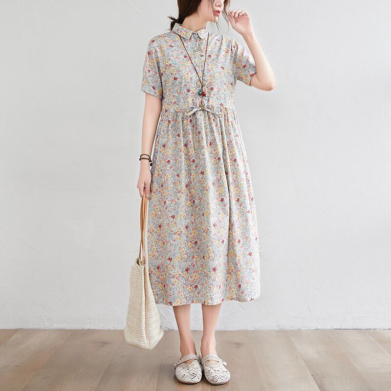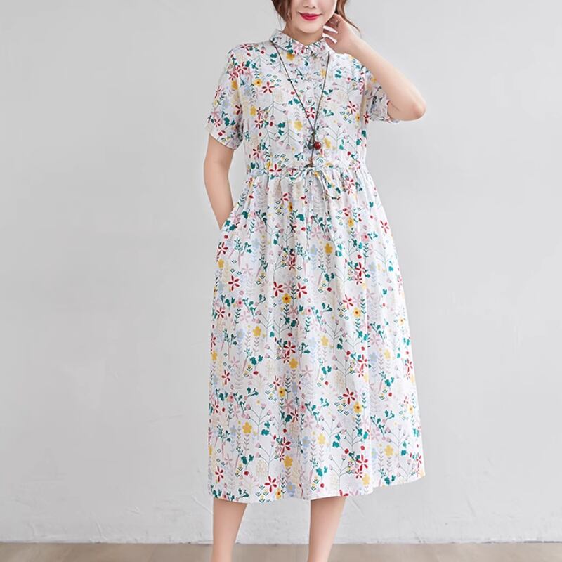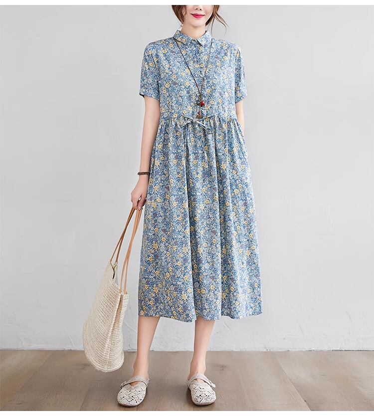 春夏のお出かけにぴったりな、かわいらしくもおしゃれなワンピース。膝下のミディアム丈が上品さを引き立てます。ゆったりサイズで快適に着こなせます。個性的な花柄デザインが、あなたの魅力をより一層引き立てます。