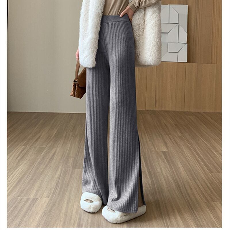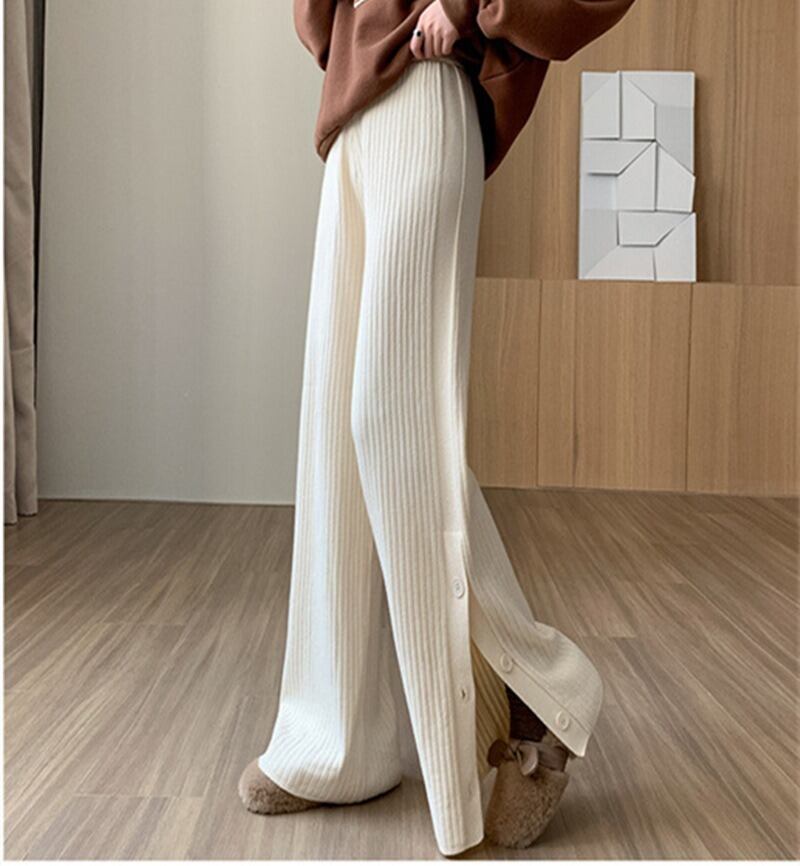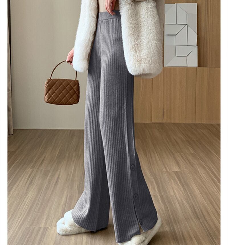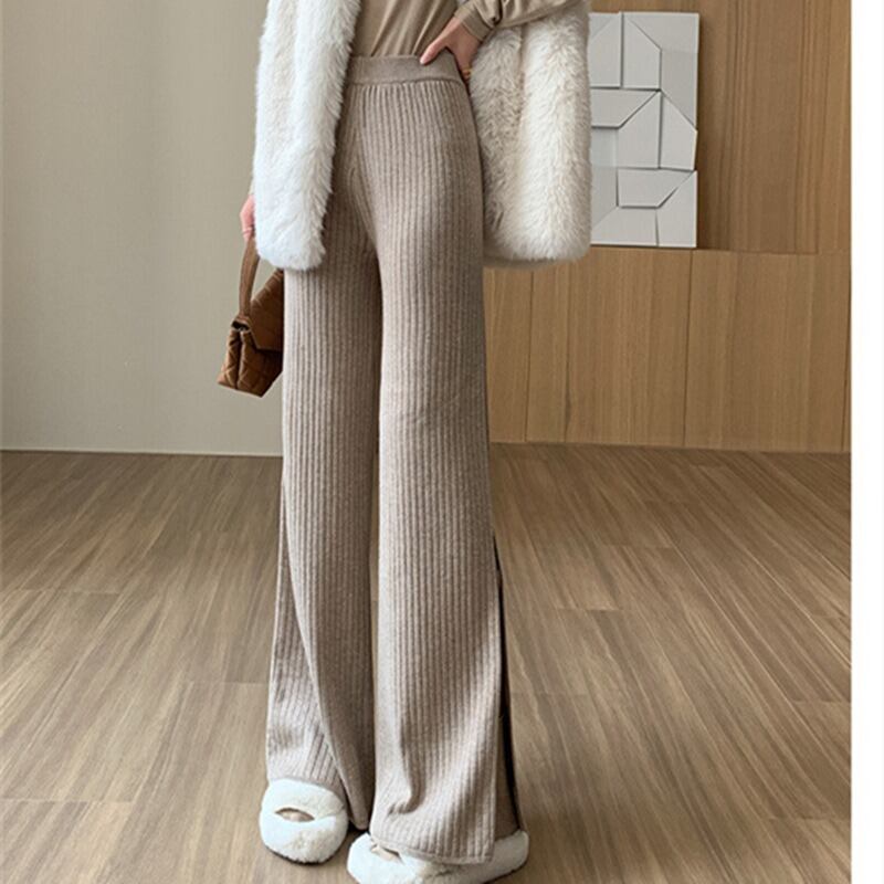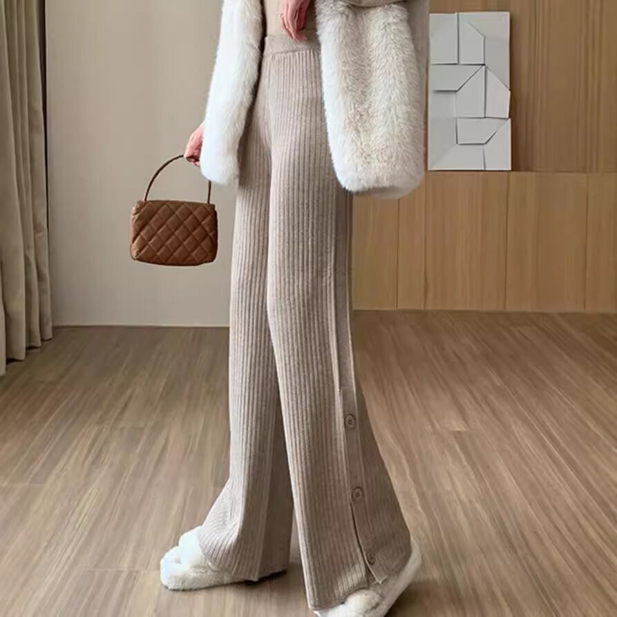 ハイウエストとウエストゴム仕様で、楽ちんな着心地を実現。リブ素材が体型を優しくカバーし、シンプルで上品な印象を与えます。