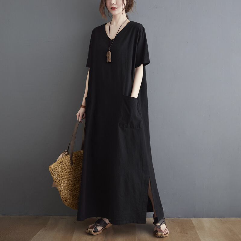 ロング丈とVネックの組み合わせが女性らしさを引き立て、普段使いはもちろん、特別な日のお出かけにも最適です。