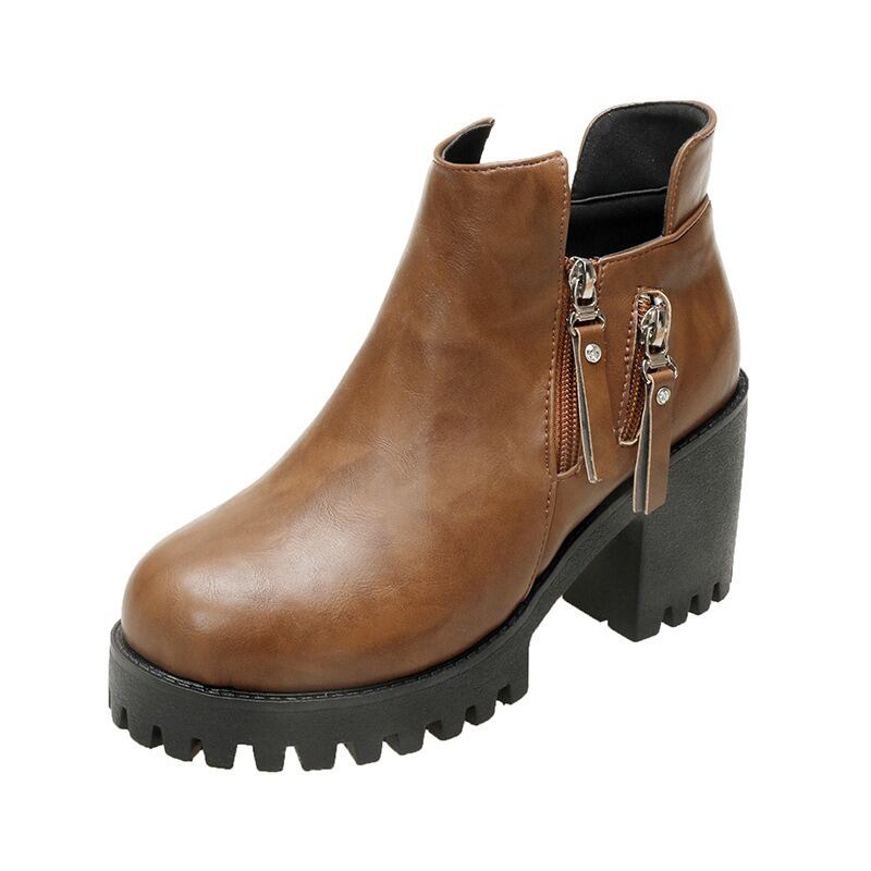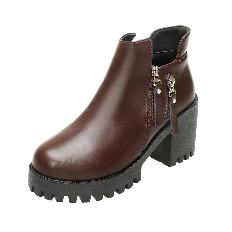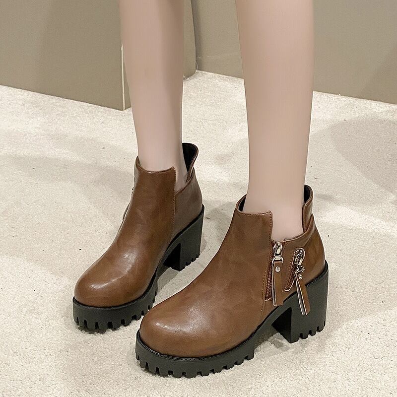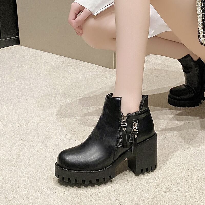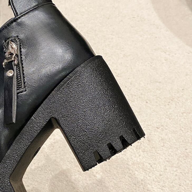 太めの8㎝のチャンキーヒールが脚を美しく長く引き立ててくれます。
