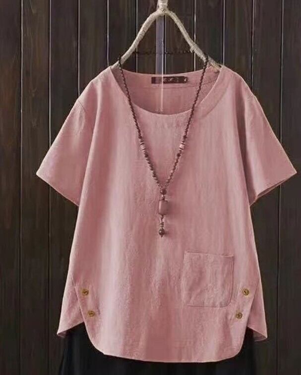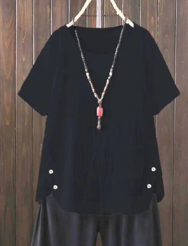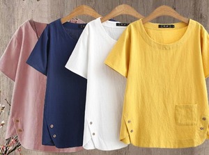 シンプルなUネックデザインに、可愛らしいポケットとボタンがポイントで、モダンな雰囲気を兼ね備え、こなれ感を加えてくれます。