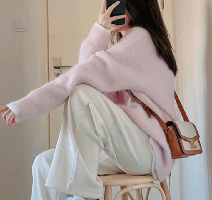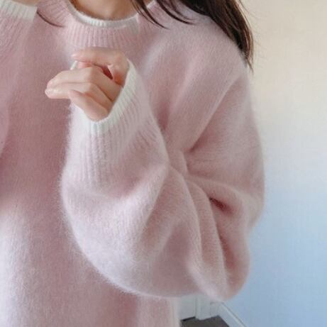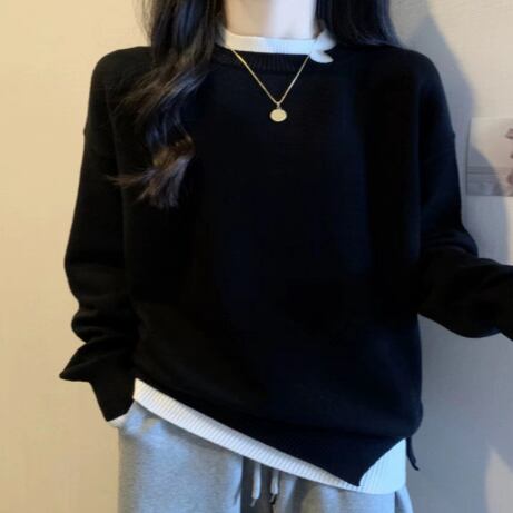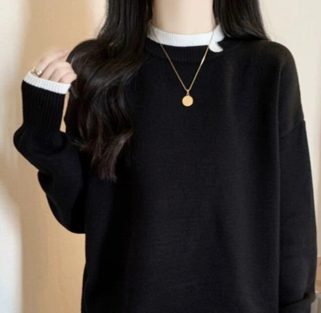 重ね着風のニットプルオーバー