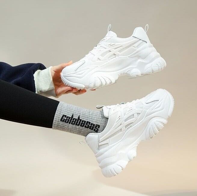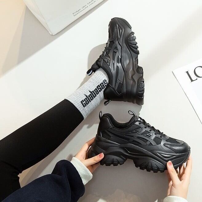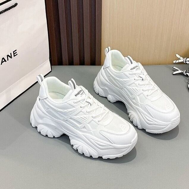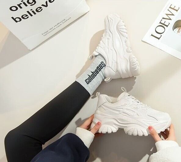 カジュアルでありながら、スタイリッシュな印象を与えるレディース厚底スニーカーです。