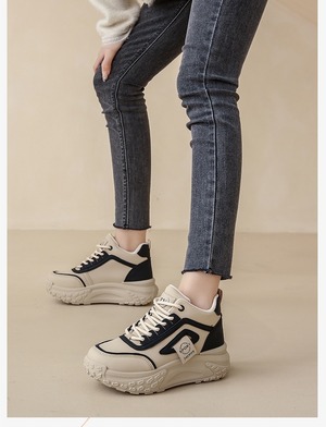 厚底デザインとラウンドトゥが美脚効果を演出し、脚長のシルエットを叶えます。