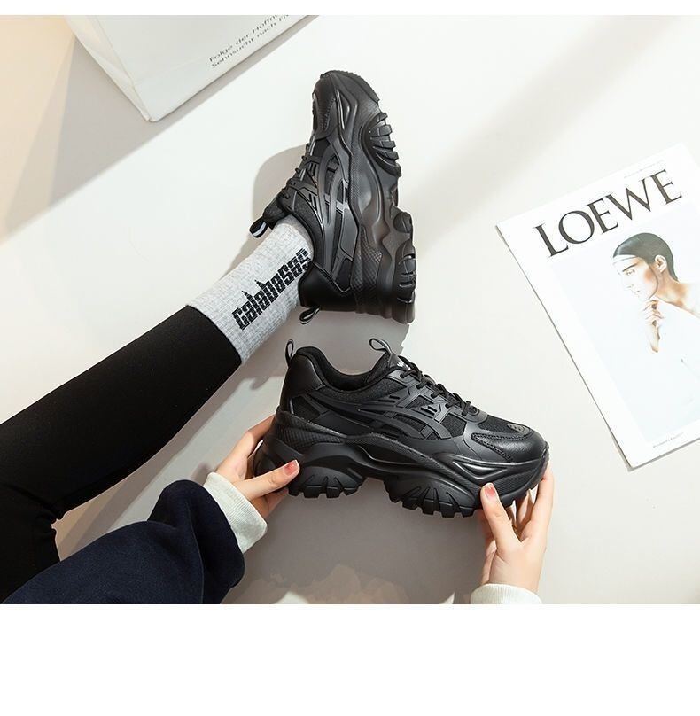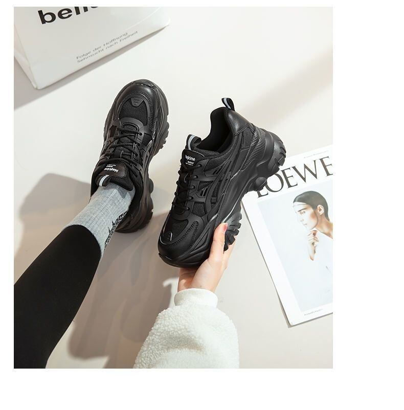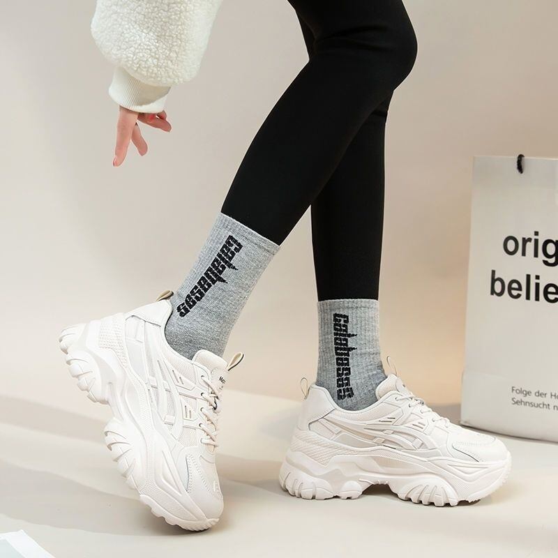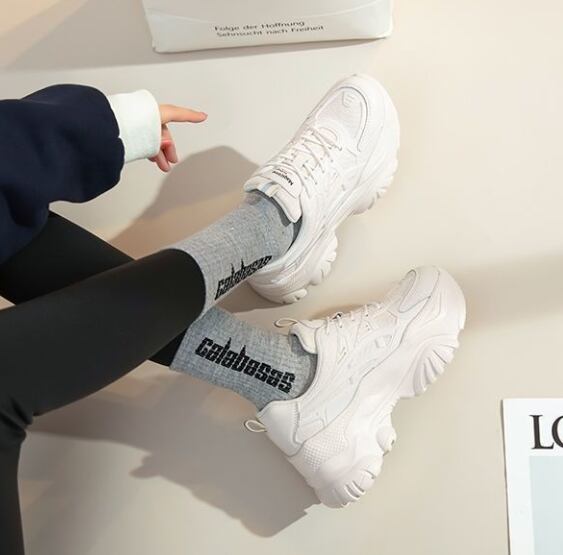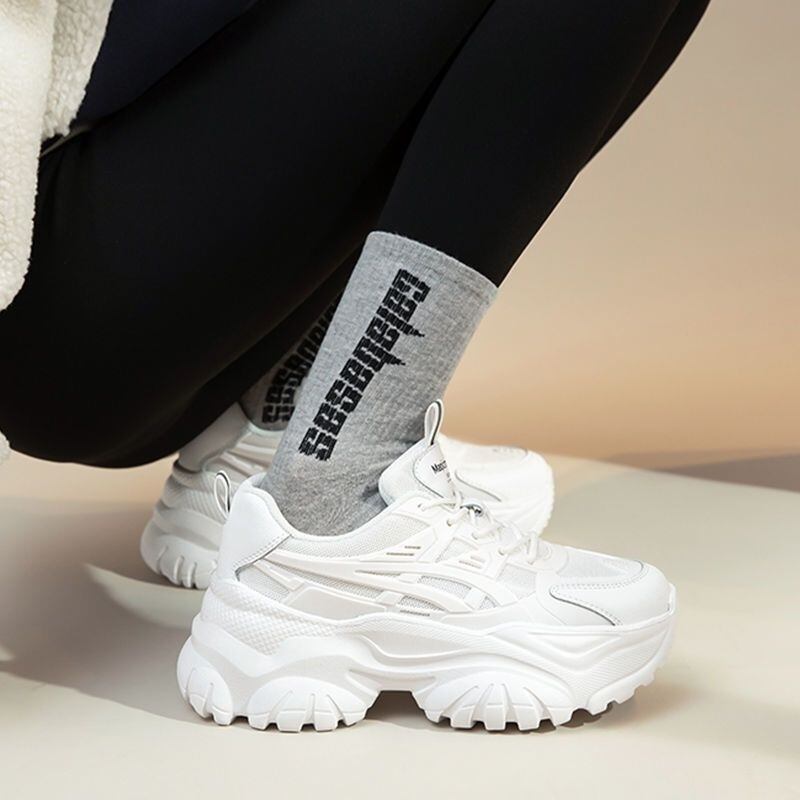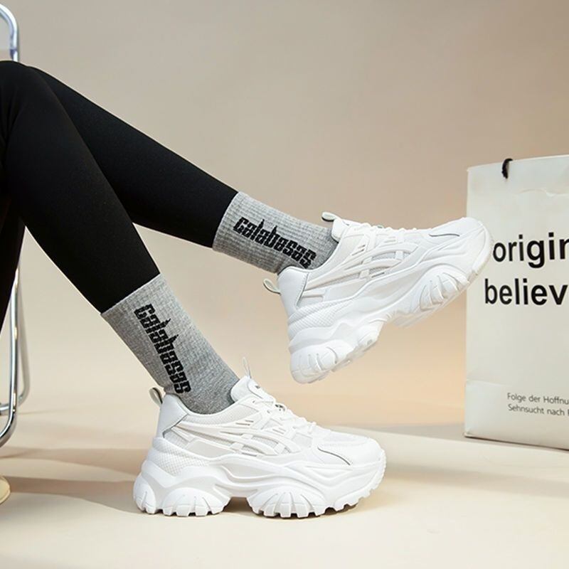 シンプルでありながらもおしゃれさを演出するデザインが特徴のレディーススニーカーです。厚底ラウンドトゥの形状は、美脚効果を高め、脚長に見せることができます。