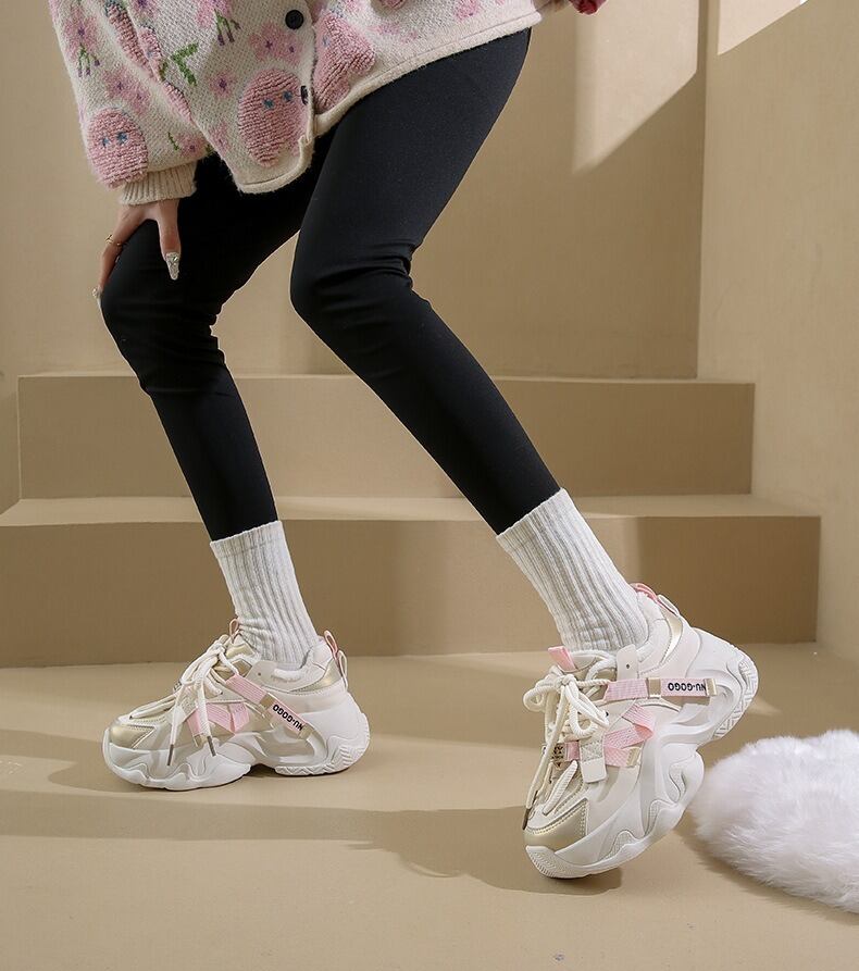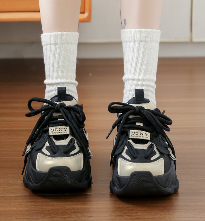 厚底仕様により、美脚・脚長効果を実現し、ラウンドトゥの形状が優れた履き心地を提供します。