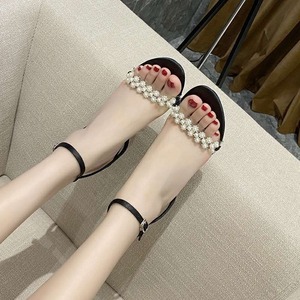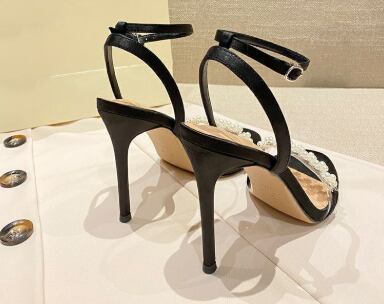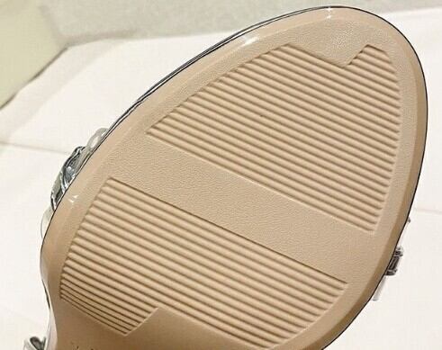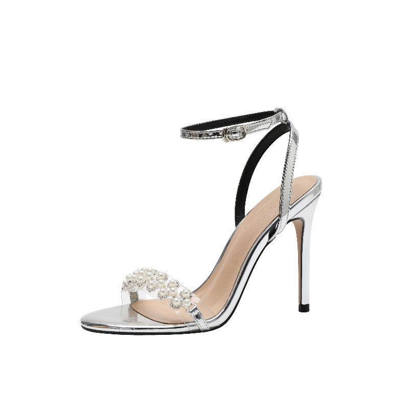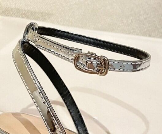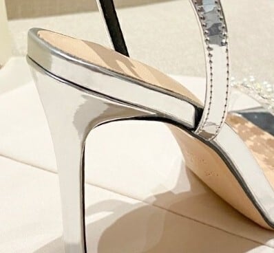 ハイヒールとストラップデザインが魅力的で、美脚効果を引き立てます。