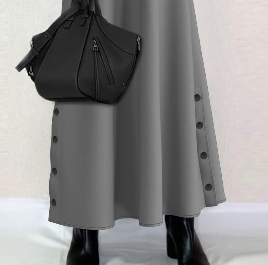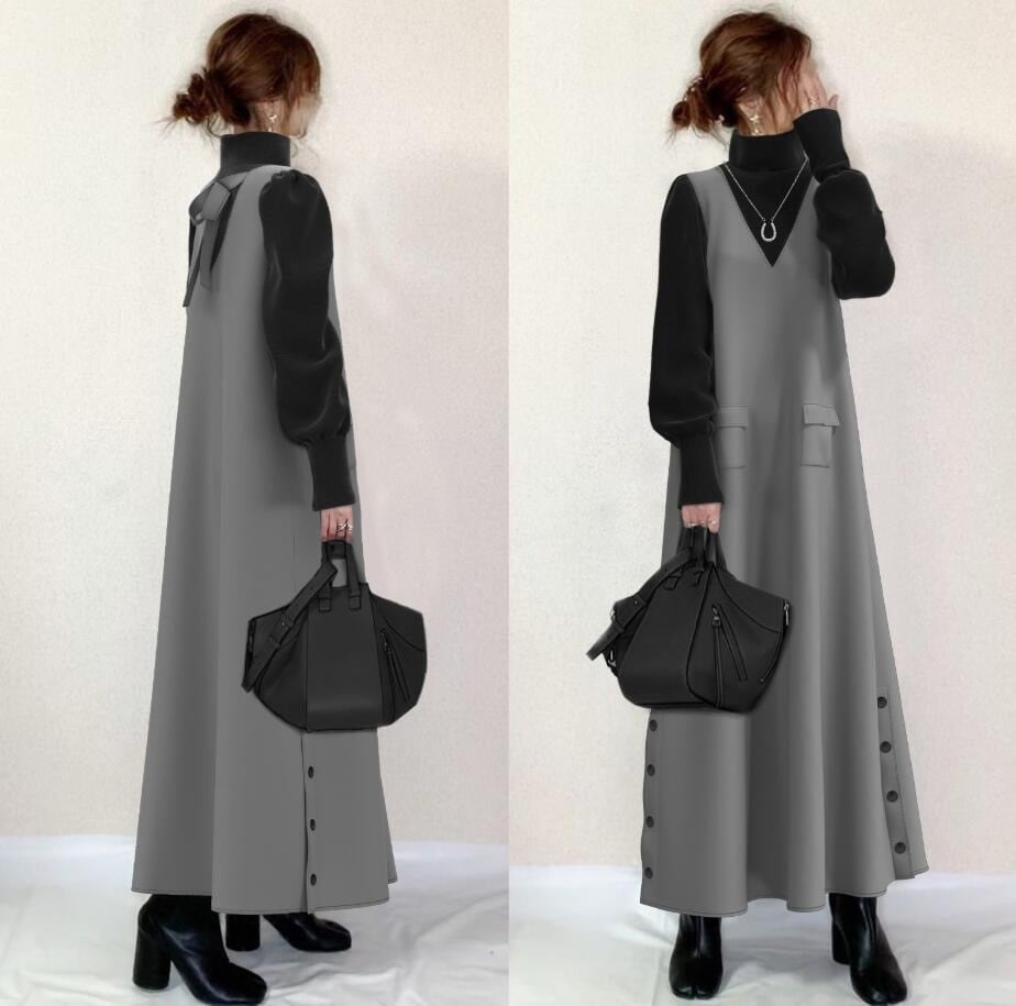 フレアAラインのシルエットが女性らしい優雅さを引き立て、デイリーユースから特別なお出かけまで幅広く活躍します。