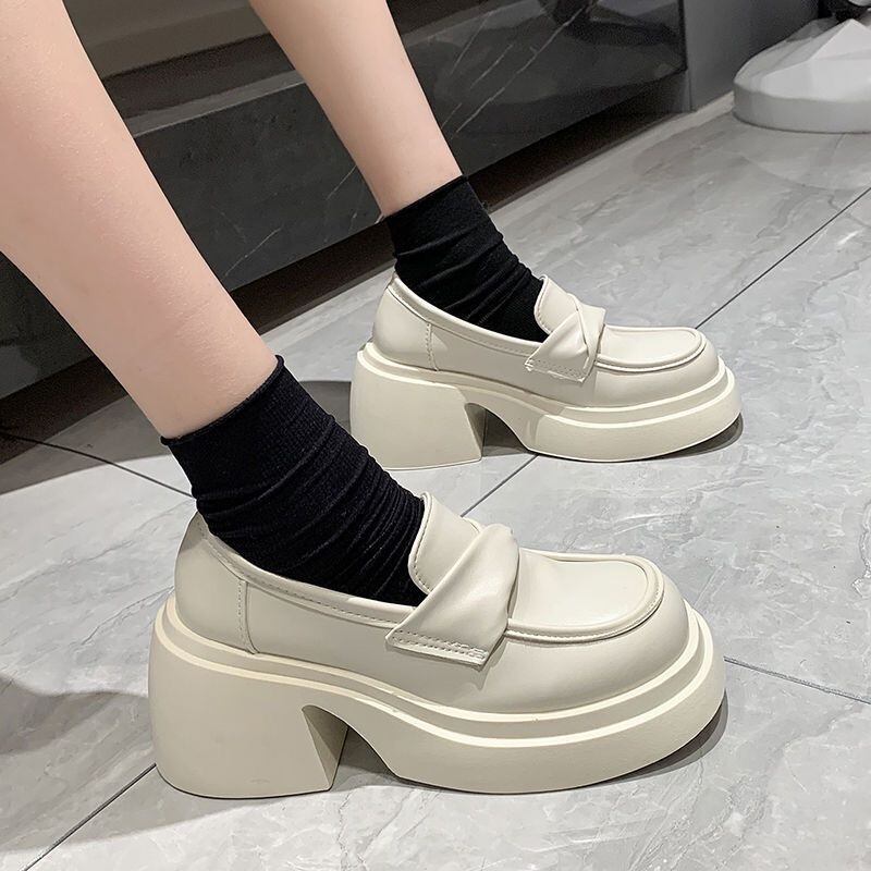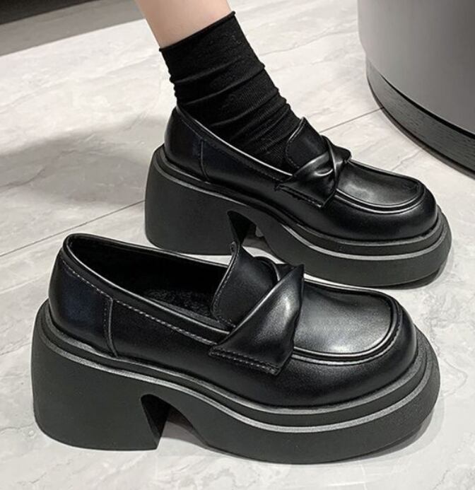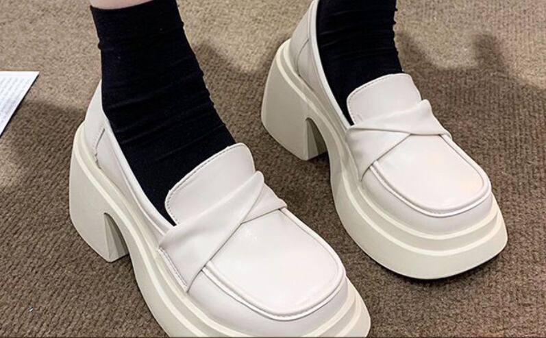 シンプルでおしゃれなデザインのこのパンプスは、厚底で8cmの高ヒール仕立て。