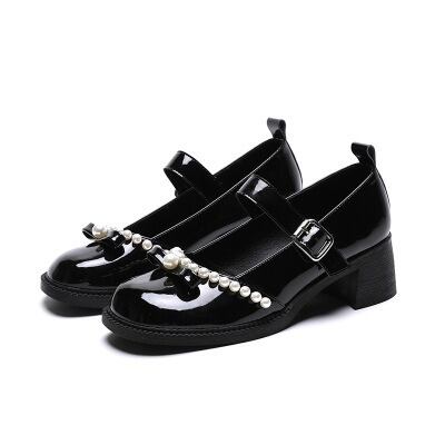 ローファーとしても履けるヒールパンプスで、1cmの太ヒールとローヒール設計が特徴。