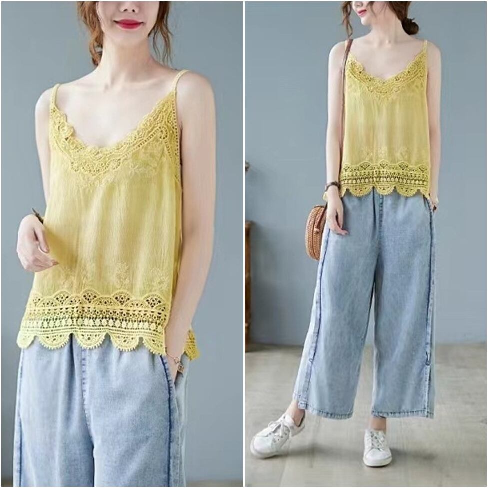 レトロな刺繍柄がポイントの抜け感あるキャミソール。