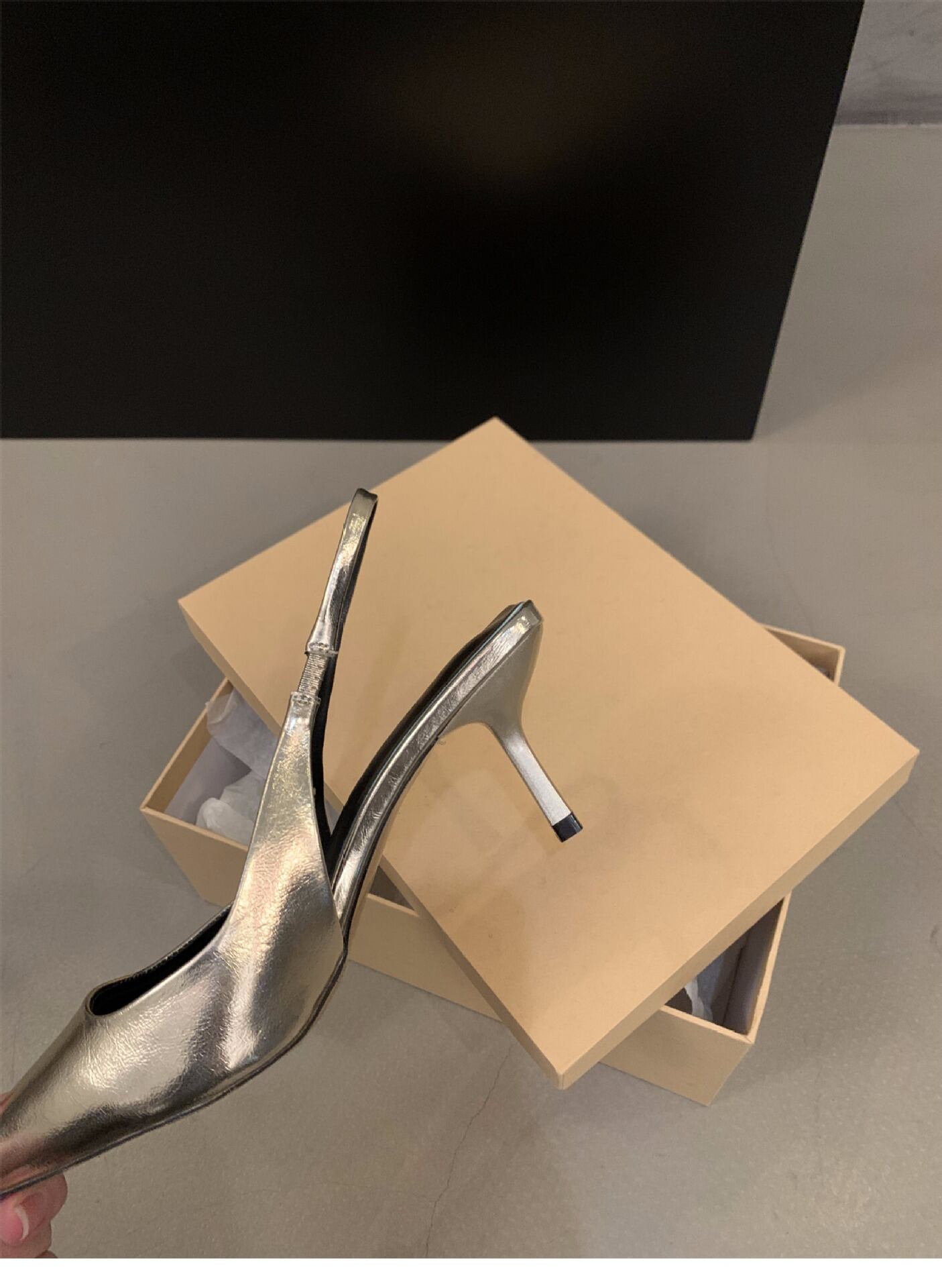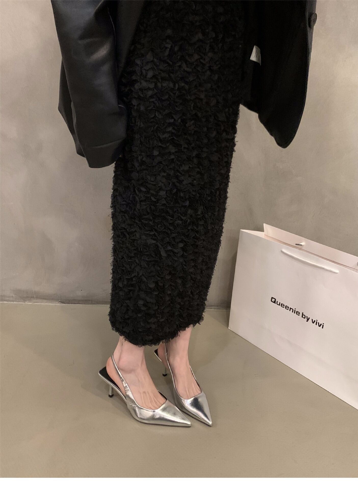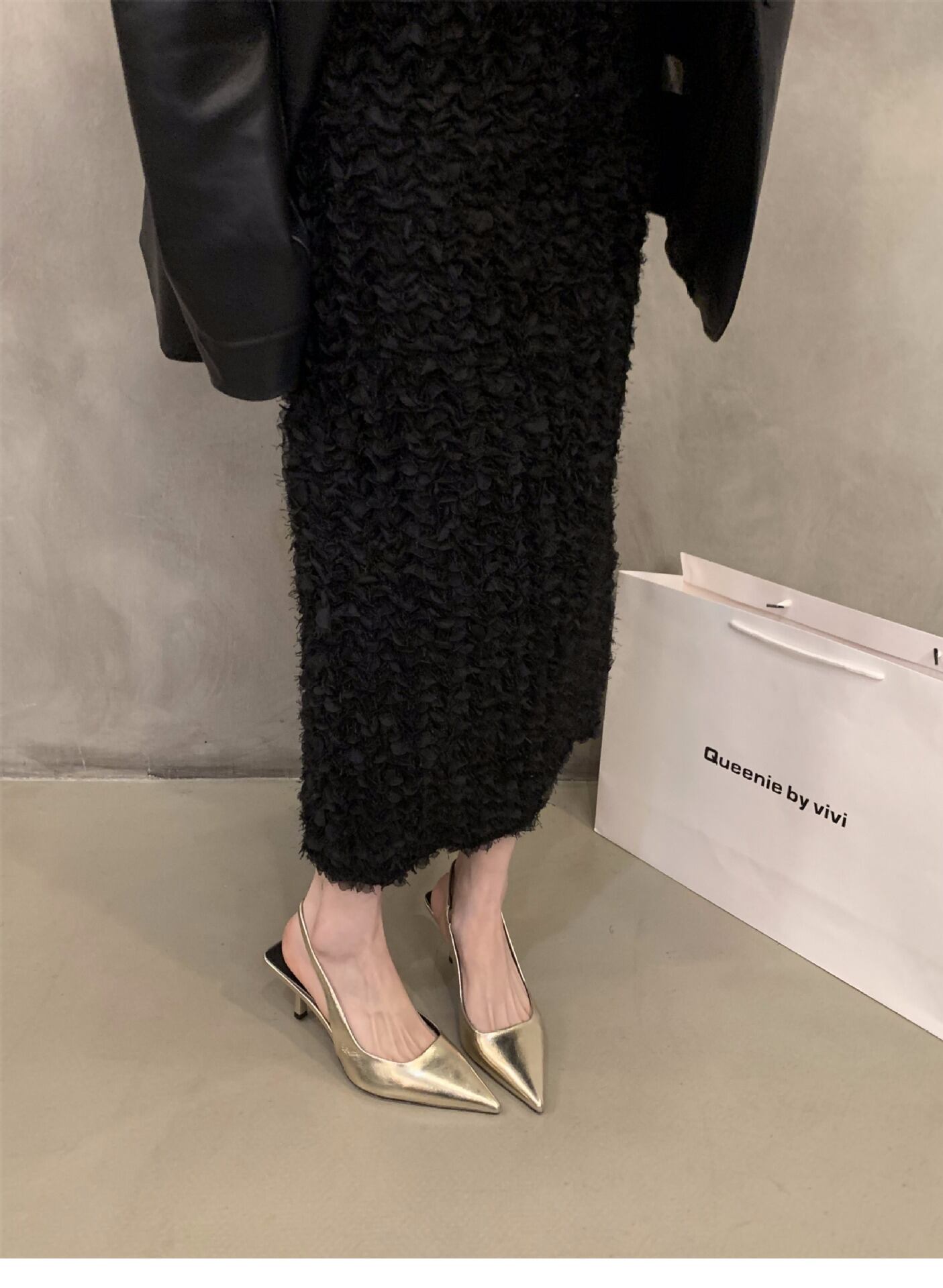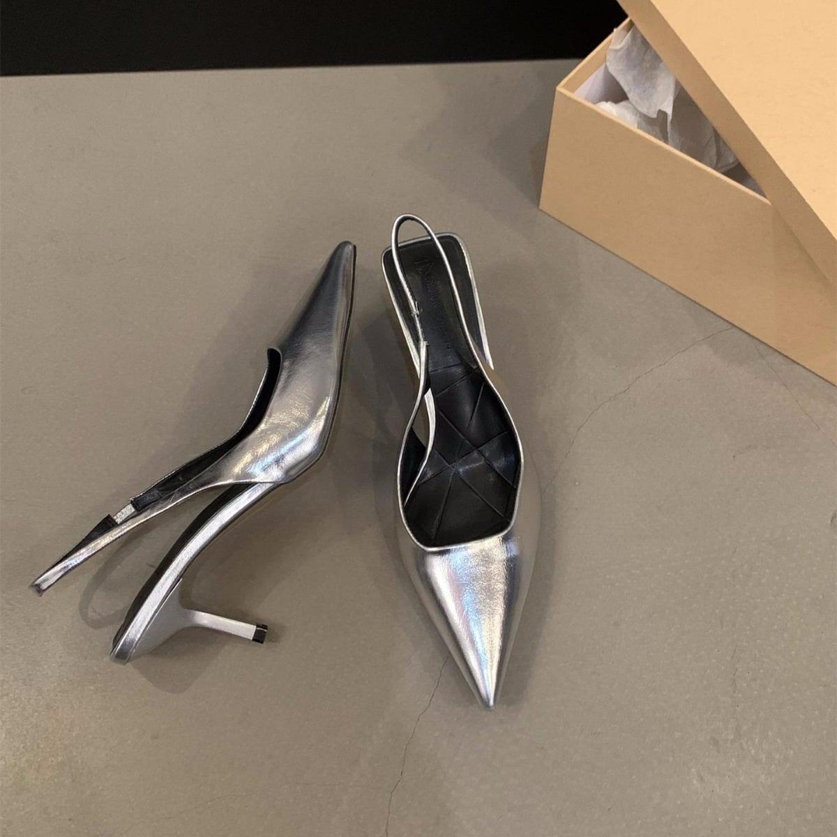 ポインテッドトゥデザインとバックストラップで、美脚効果を実感できる一足です!