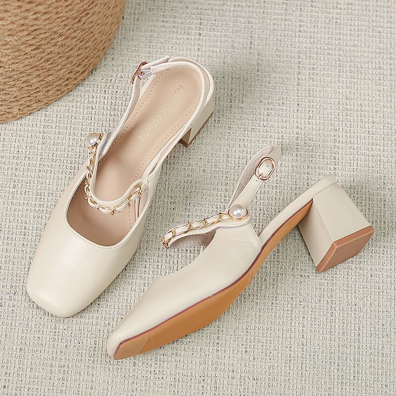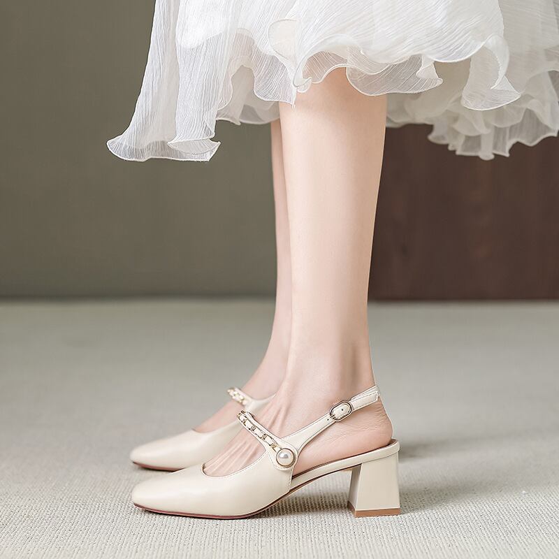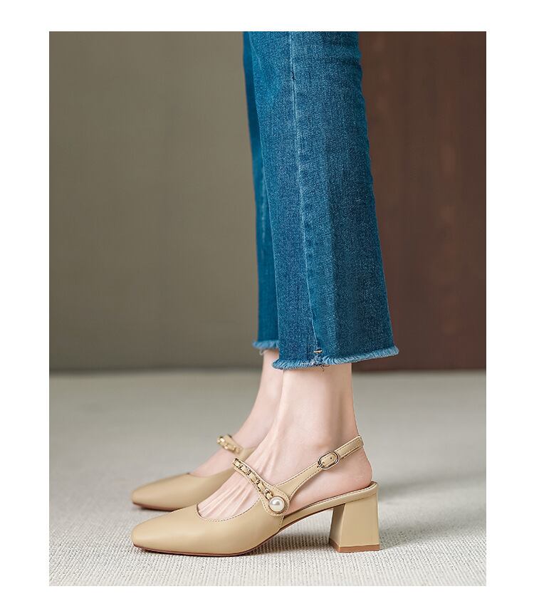 スクエアトゥとストラップが洗練された印象を与え、どんなスタイルにも合わせやすく、デートやお出かけ、パーティーシーンにぴったりです。