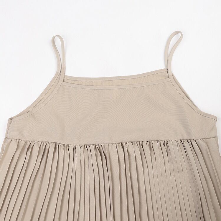 ノースリーブにプリーツデザインが軽やかさを演出し、アシンメトリーデザインがこなれ感をプラスします。