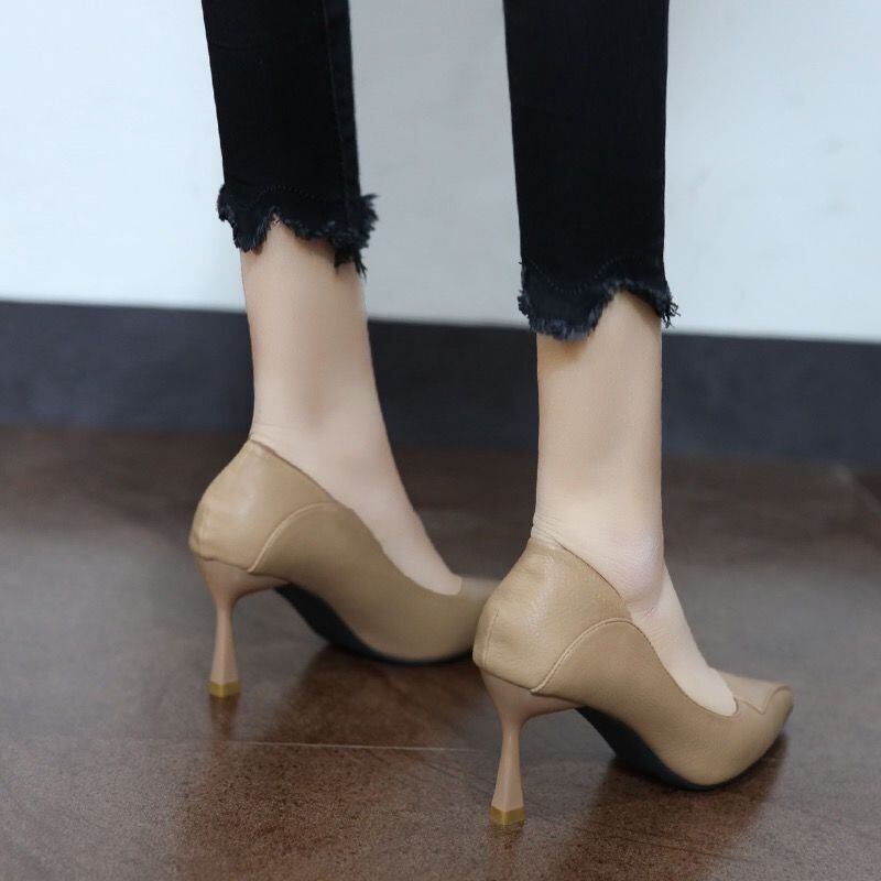 ミドルヒールのポインテッドトゥデザインが美脚を実現し、どんなコーディネートにもぴったりフィットします。