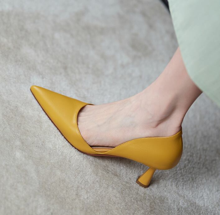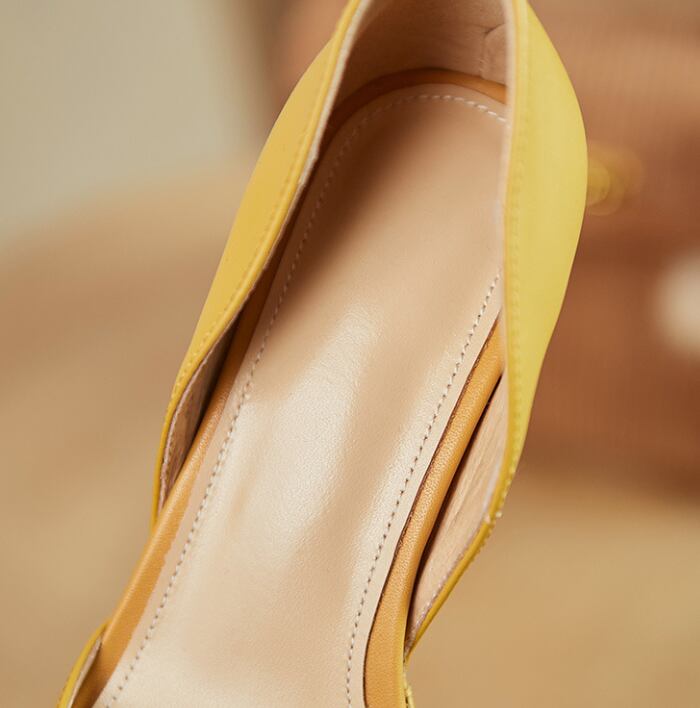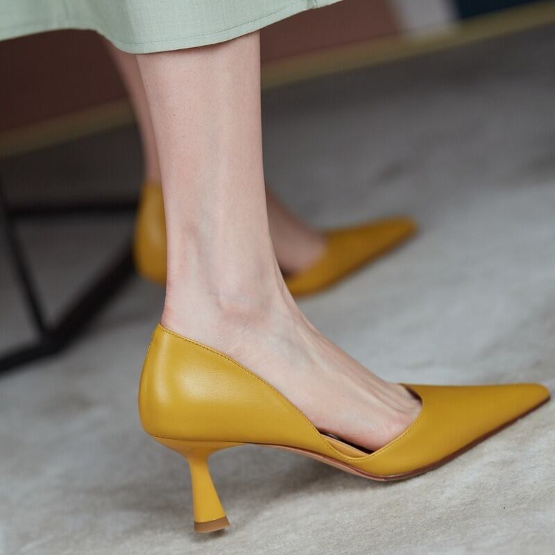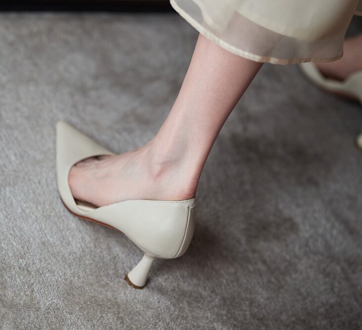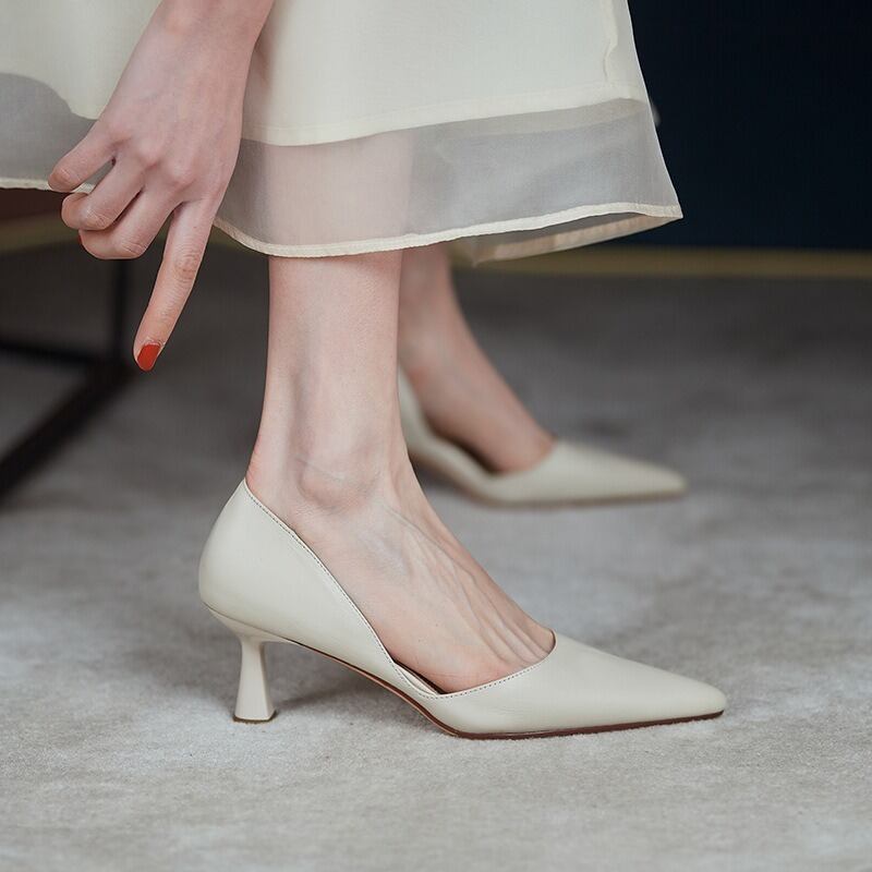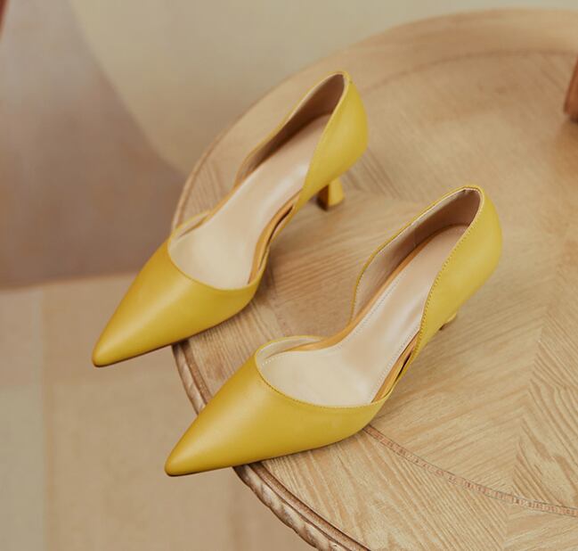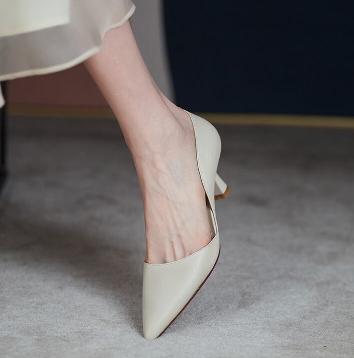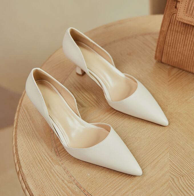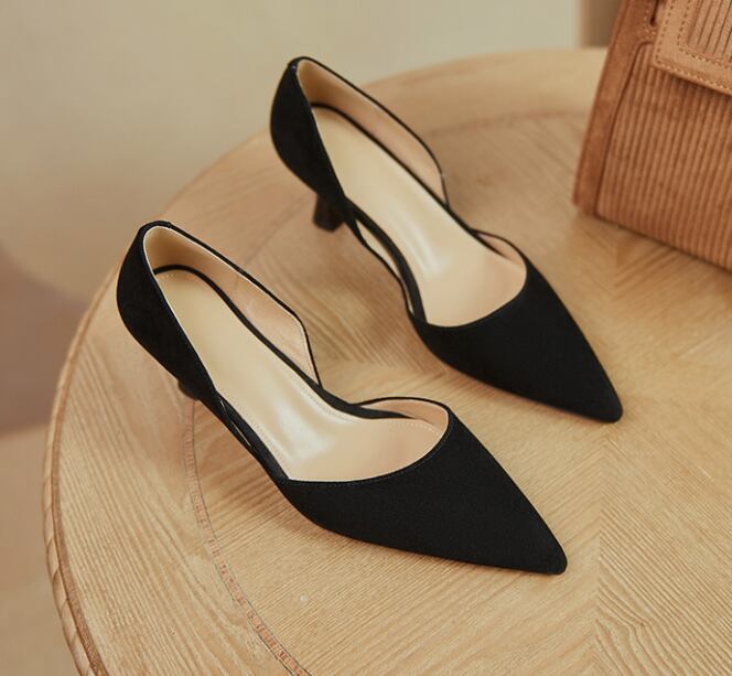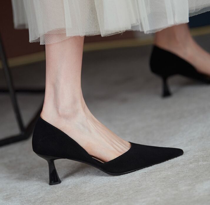 このヒールパンプスは、6cmのミドルヒールにポインテッドトゥのデザインで、美脚効果を引き出し、脚を長く見せてくれます。