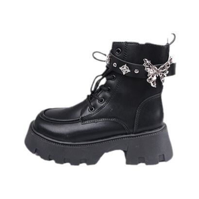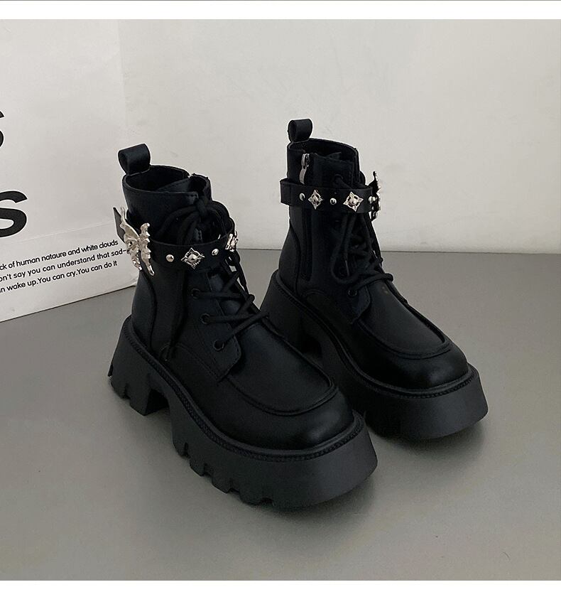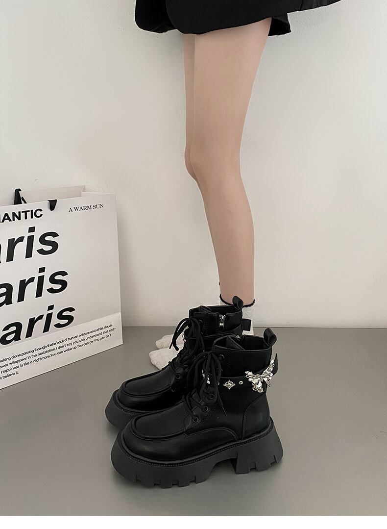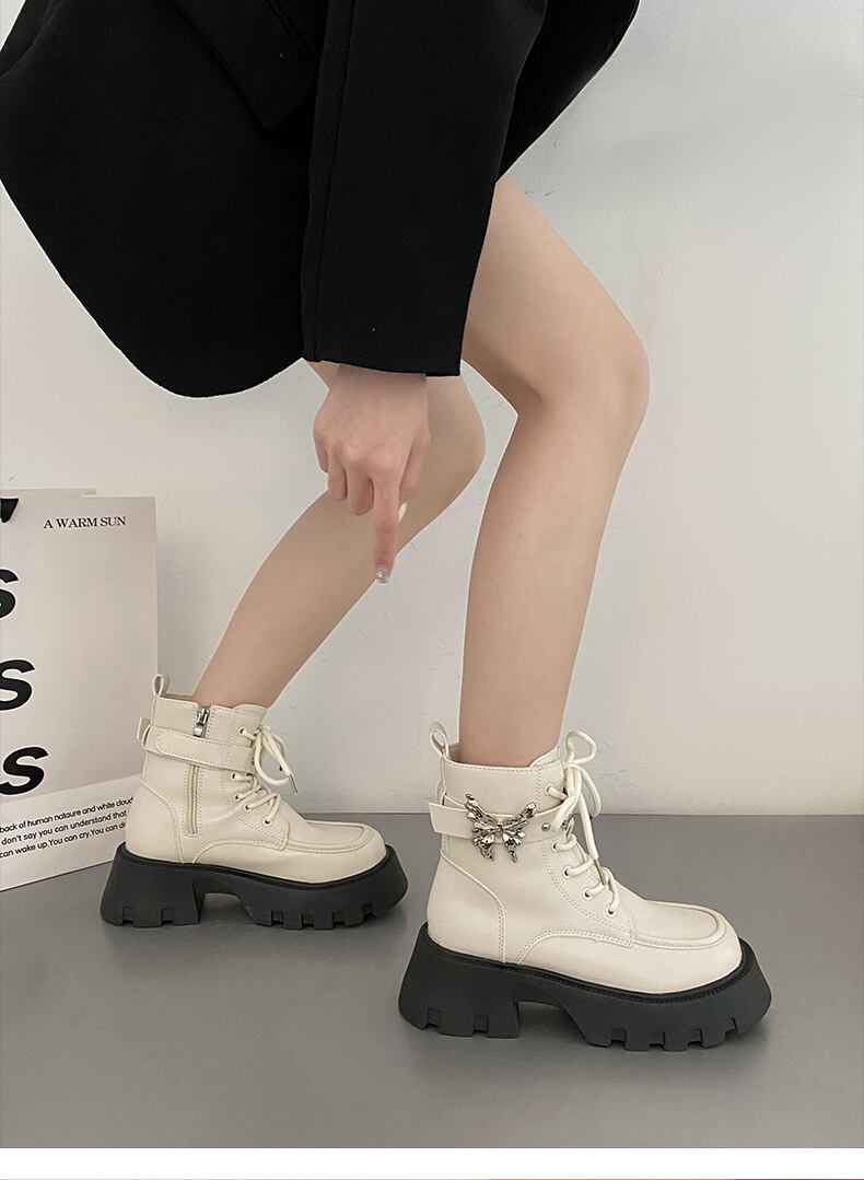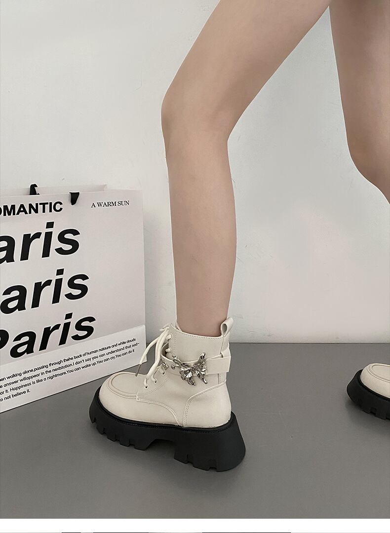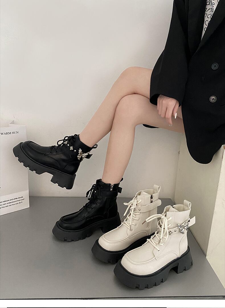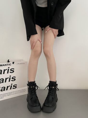 厚底のデザインにより脚長効果を実現し、ラウンドトゥのフォルムが快適さをプラス。