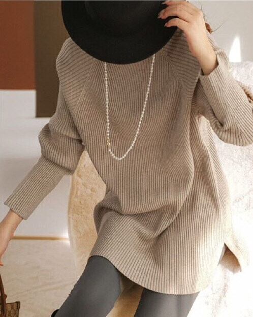 オーバーサイズでゆったり感があり、リブ編みが絶妙な上品さをプラス。