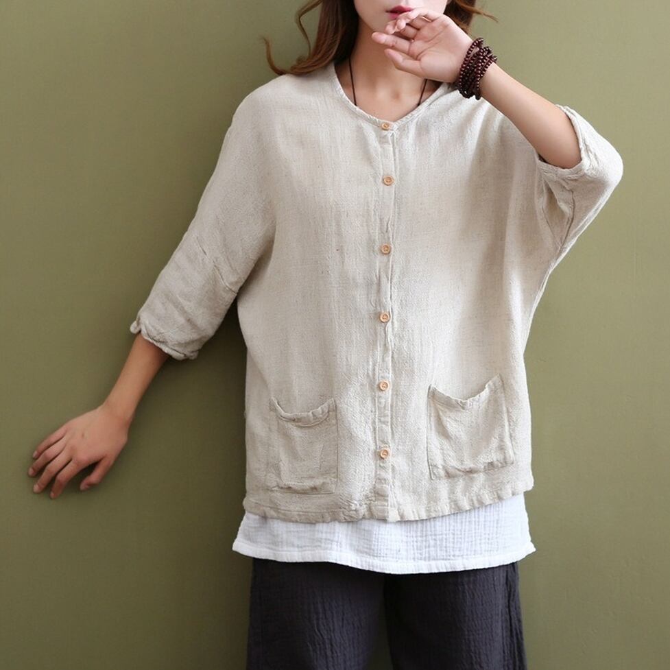 ゆるっとしたルーズな雰囲気とナチュラル感を引き出すシャツトップス。