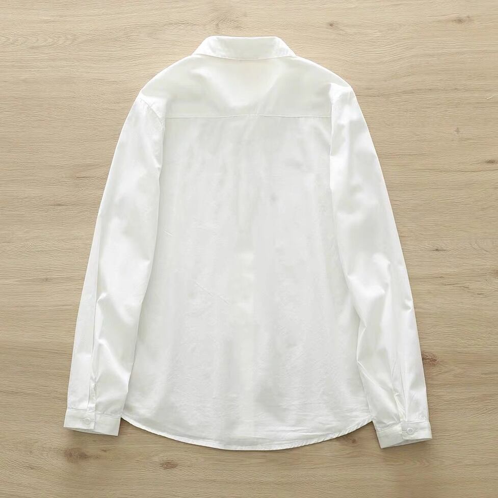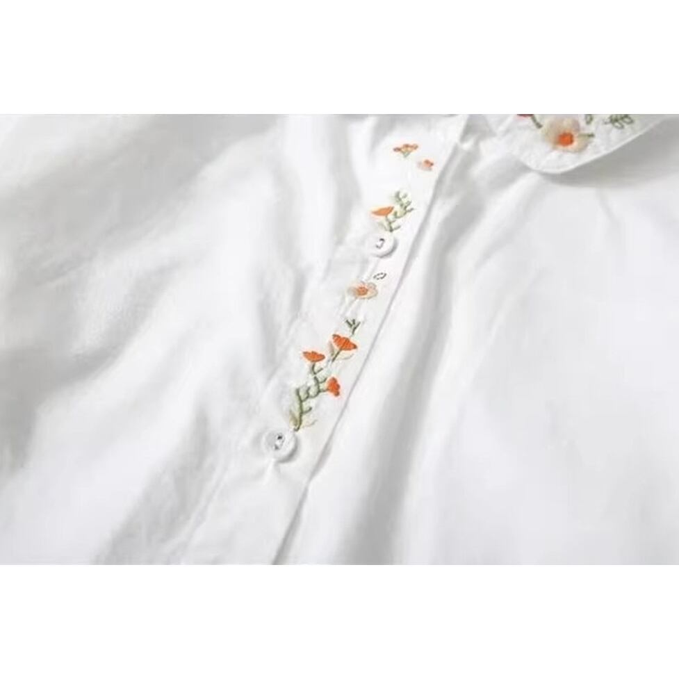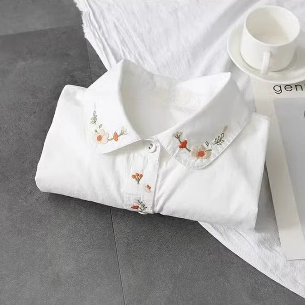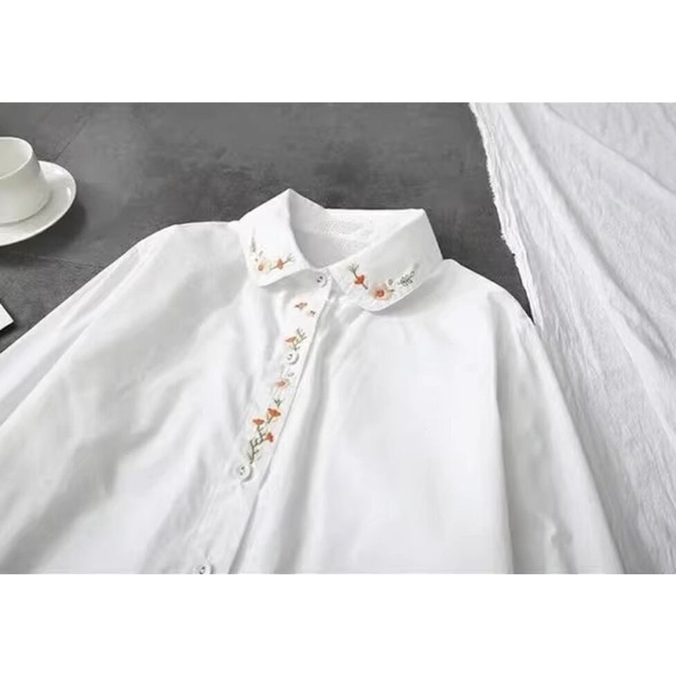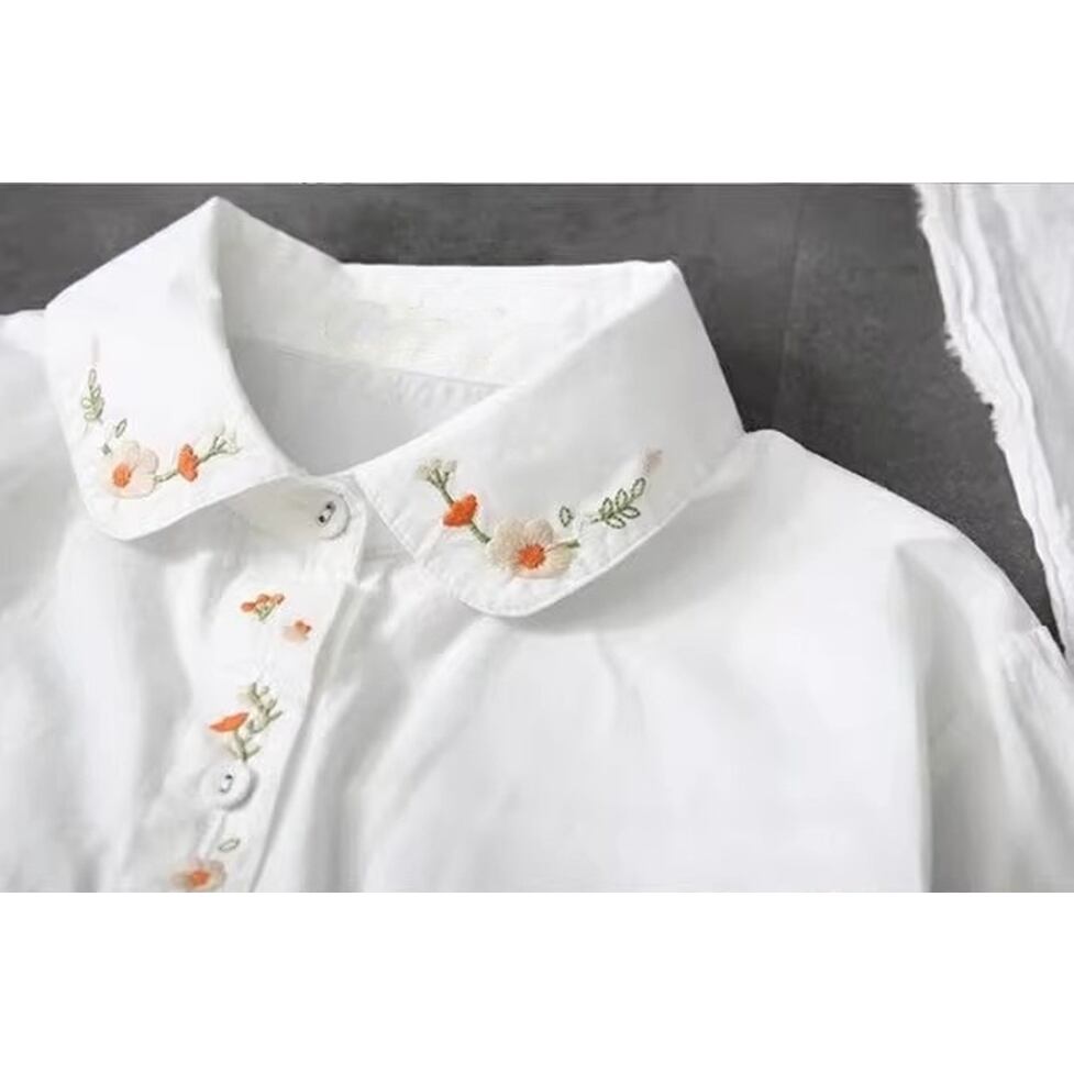 レトロな刺繍が可愛く配置された襟付きシャツ。