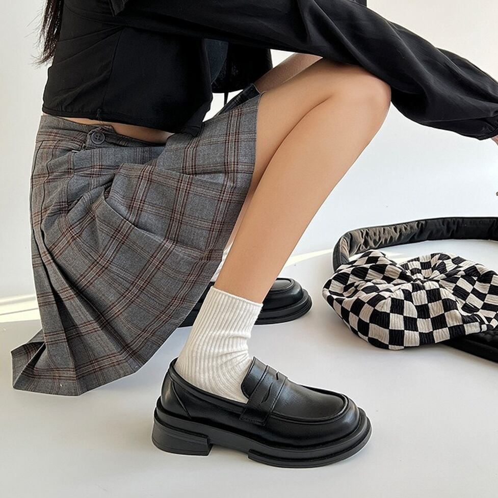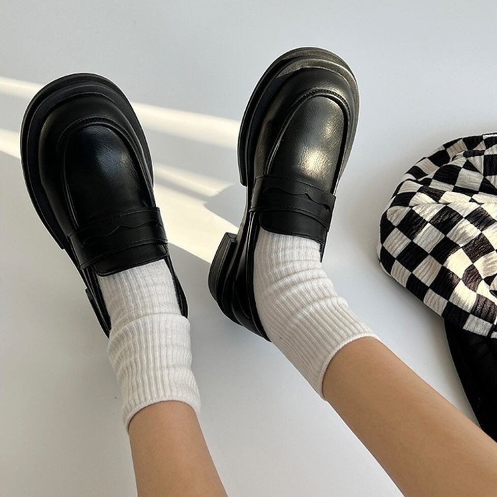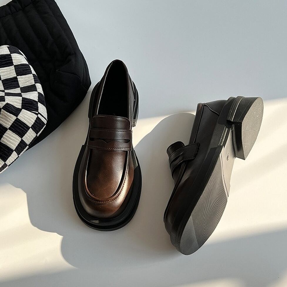 インパクトを付けつつベーシックなフォルムが使いやすいローファーシューズ。