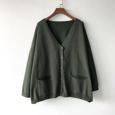 長袖のVネックデザインが大人可愛い雰囲気を演出し、通勤やデート、お出かけなど幅広いシーンで活躍します。ポケット付きで実用性も抜群!オーバーサイズのシルエットがこなれ感をプラスし、上品かつカジュアルなスタイルが楽しめます。