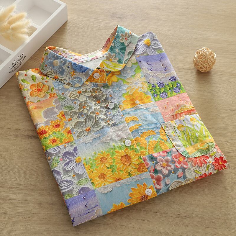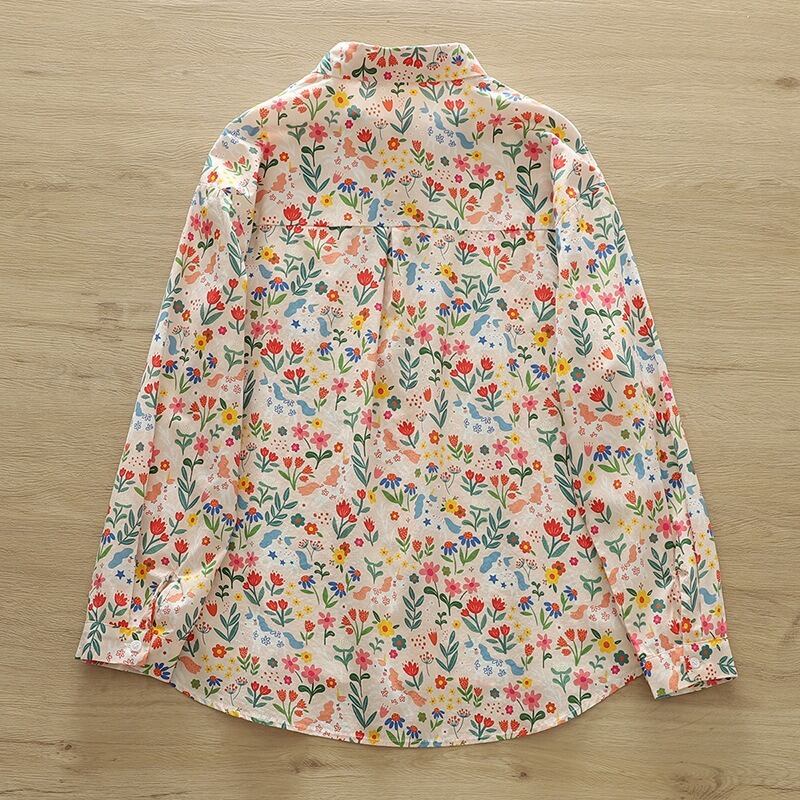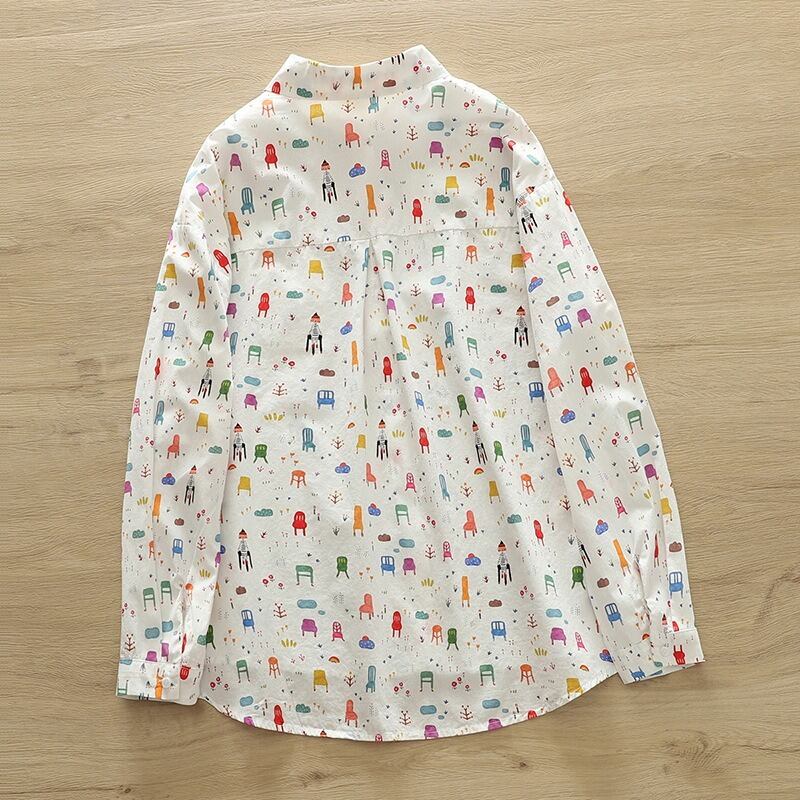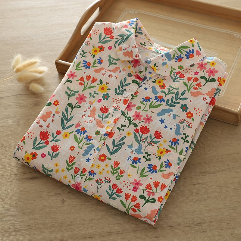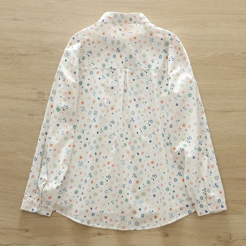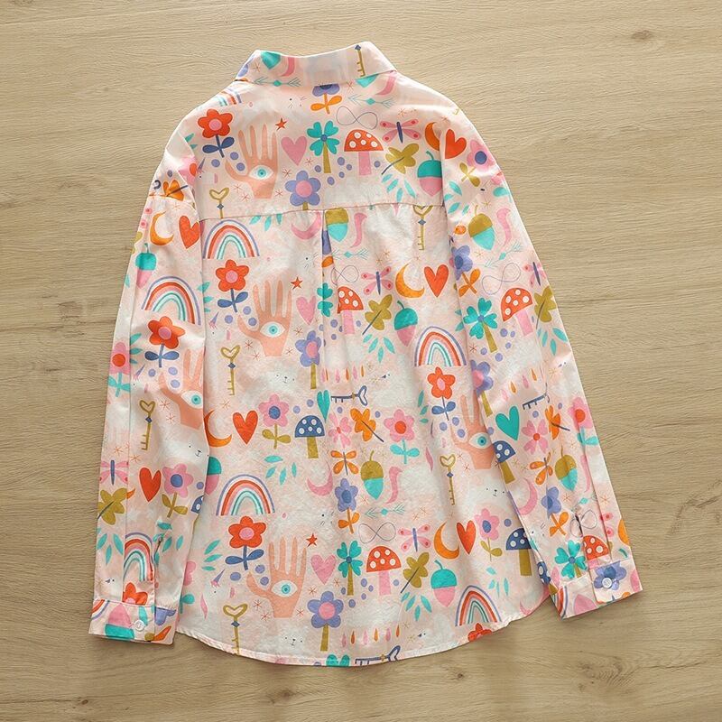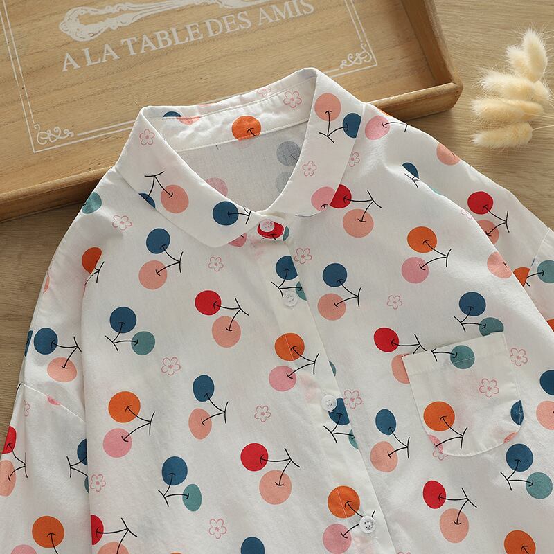 オーバーサイズのデザインとかわいい総柄デザインが、シンプルながらもフェミニンな雰囲気を演出します。重ね着で襟を見せるコーデもおすすめです。
