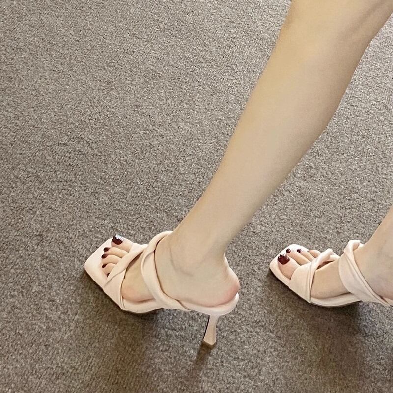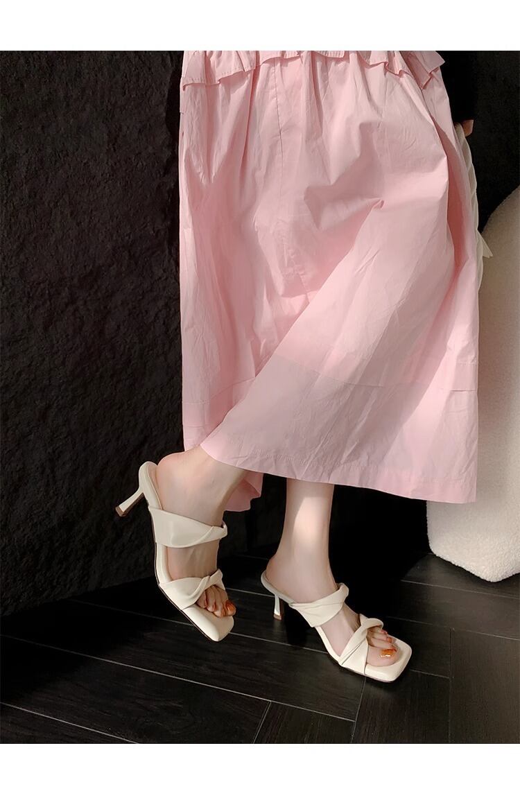 ハイヒールでスクエアトゥの形状が美脚を演出し、春夏のカジュアルからオフィススタイルまで幅広く活躍。