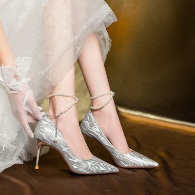 シンプルかつエレガントなデザインが魅力のハイヒールです。選べる6.5cmまたは8.5cmのピンヒールが、スタイルアップ効果を実現。パールストラップが上品さを添え、大人可愛い印象を与えます。結婚式や披露宴、パーティーなどで華やかな存在感を放つこと間違いなしです。 色展開: シャンパン(ヒール6.5cm) シルバー(ヒール6.5cm) シャンパン(ヒール8.5cm) シルバー(ヒール8.5cm) サイズ: 22.0cm(34)22.5cm(35)23.0cm(36) 23.5cm(37)24.0cm(38)24.5cm(39)25.0cm(40) サイズ(cm): 22.0cm(34)/足の長さ 21〜22 /足幅 8 22.5cm(35)/足の長さ 22〜22.5 /足幅 8.5 23.0cm(36)/足の長さ 22.5〜23 /足幅 8.5〜9 23.5cm(37)/足の長さ 23〜23.5 /足幅 9 24.0cm(38)/足の長さ 23.5〜24 /足幅 9〜9.5 24.5cm(39)/足の長さ 24〜24.5 /足幅 9.5〜10 25.0cm(40)/足の長さ 24.5〜25 /足幅 10 《商品について》 当ショップで取り扱っている商品は、海外で製造されたノーブランド品となっております。 日本製品と比べて、縫い目の粗さ、小さなほつれ、軽微な汚れやシミ、ファスナーのかたさ、形やサイズのばらつき、仕様の細かな違い、その他仕上げの甘さなどが見られる場合がございます。 サイズは平置きでの実寸を記載しておりますが、測定方法や生産工程の違いにより、最大で3cm程度の誤差が生じる場合がございます。 これらは製品の特性であり、不良品には該当いたしませんので、あらかじめご了承ください。 また、ご利用のモニターやスマートフォンの設定などにより、実物と色味が異なって見える場合がございます。 《発送について》 当ショップの商品はすべてお取り寄せ商品となっております。 ご入金確認後、商品のお届けまでに10〜24日程度のお時間を頂戴しております。 状況により、通常よりお時間をいただく場合もございますので、あらかじめご了承ください。 また、欠品や製品の不具合などにより、ご注文をキャンセルさせていただく場合がございます。何卒ご理解賜りますようお願い申し上げます。 ※ご入金確認後にメーカーへ発注を行っております。 ※メーカーにて在庫切れが確認された場合は、速やかにご返金させていただきます。 《返品についての特約に関する事項》 ご注文確定後のキャンセル、ならびにサイズ・カラー等の内容変更はお受けしておりません。 ご注文の際は内容をご確認のうえ、お間違いのないようご注意ください。商品に不良がある場合を除き、返品・交換はお受けしておりません。 何卒ご理解のほど、よろしくお願い申し上げます。 最後までご覧いただき、誠にありがとうございました。 N-NBL-A01424