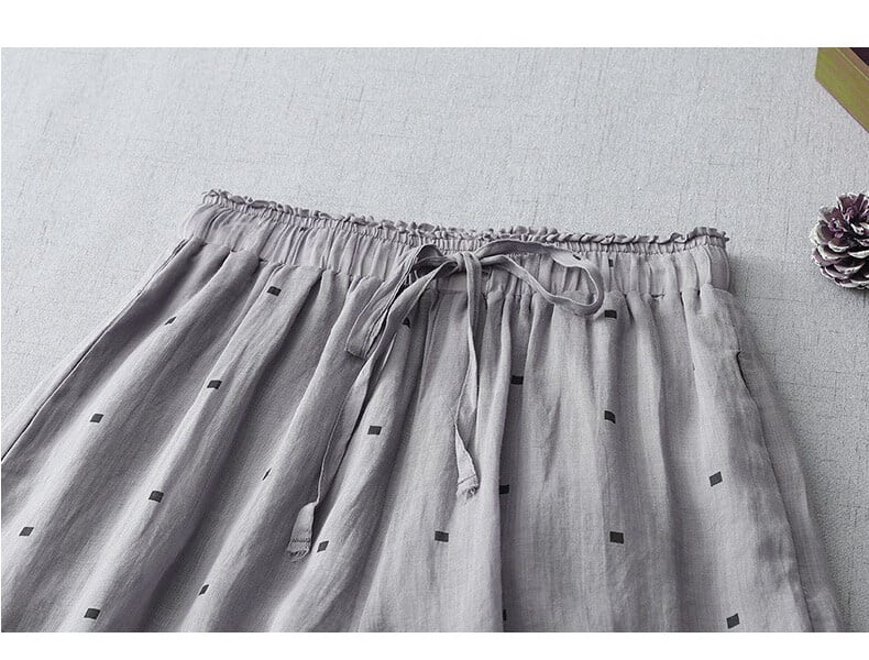 ウエストゴム仕様で楽ちんに着用でき、リボン付きがフェミニンさを引き立てます。