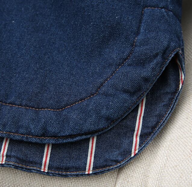 ポケットや裏の裾回りなどのストライプ生地がポイント