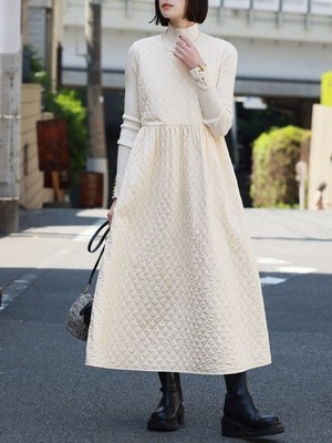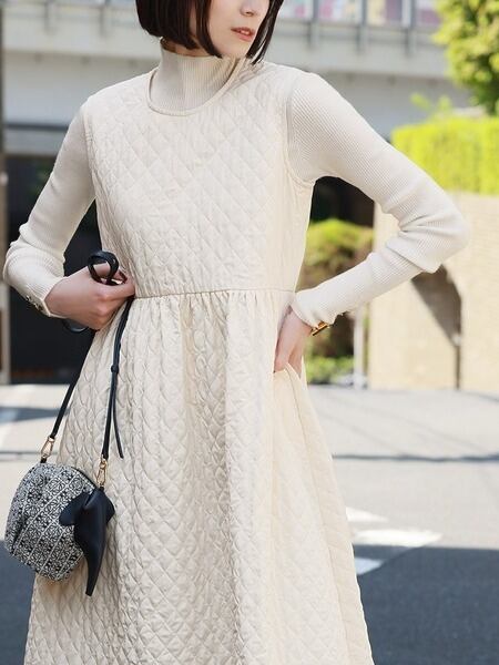 シンプルで大人可愛いキルティングデザインワンピース。