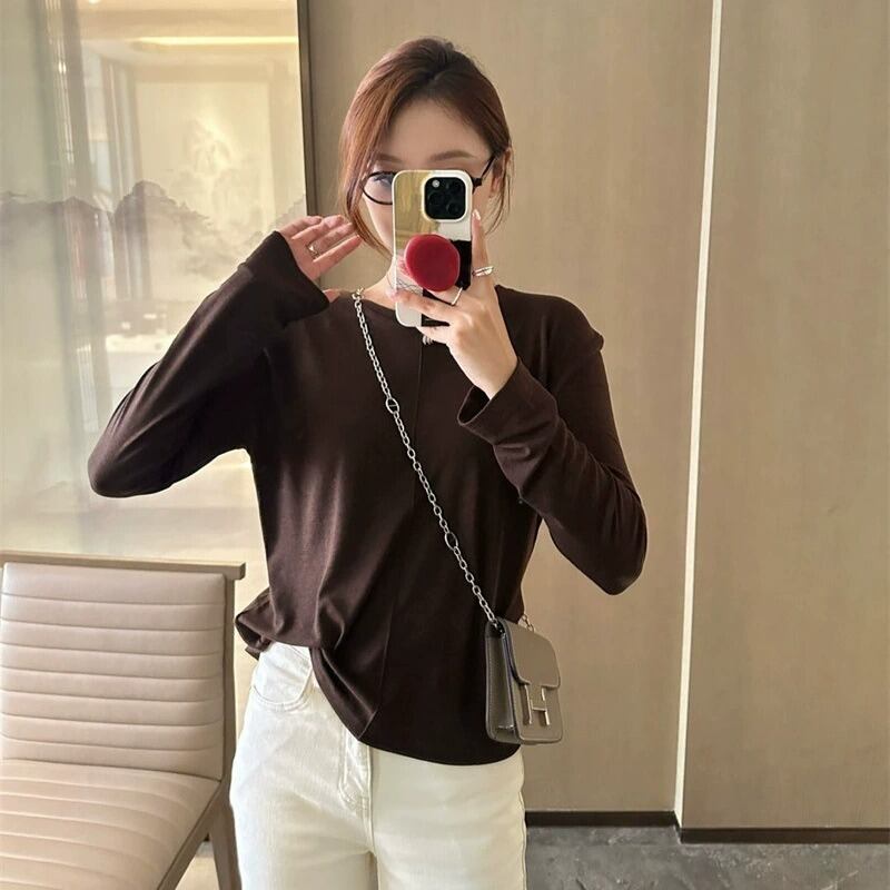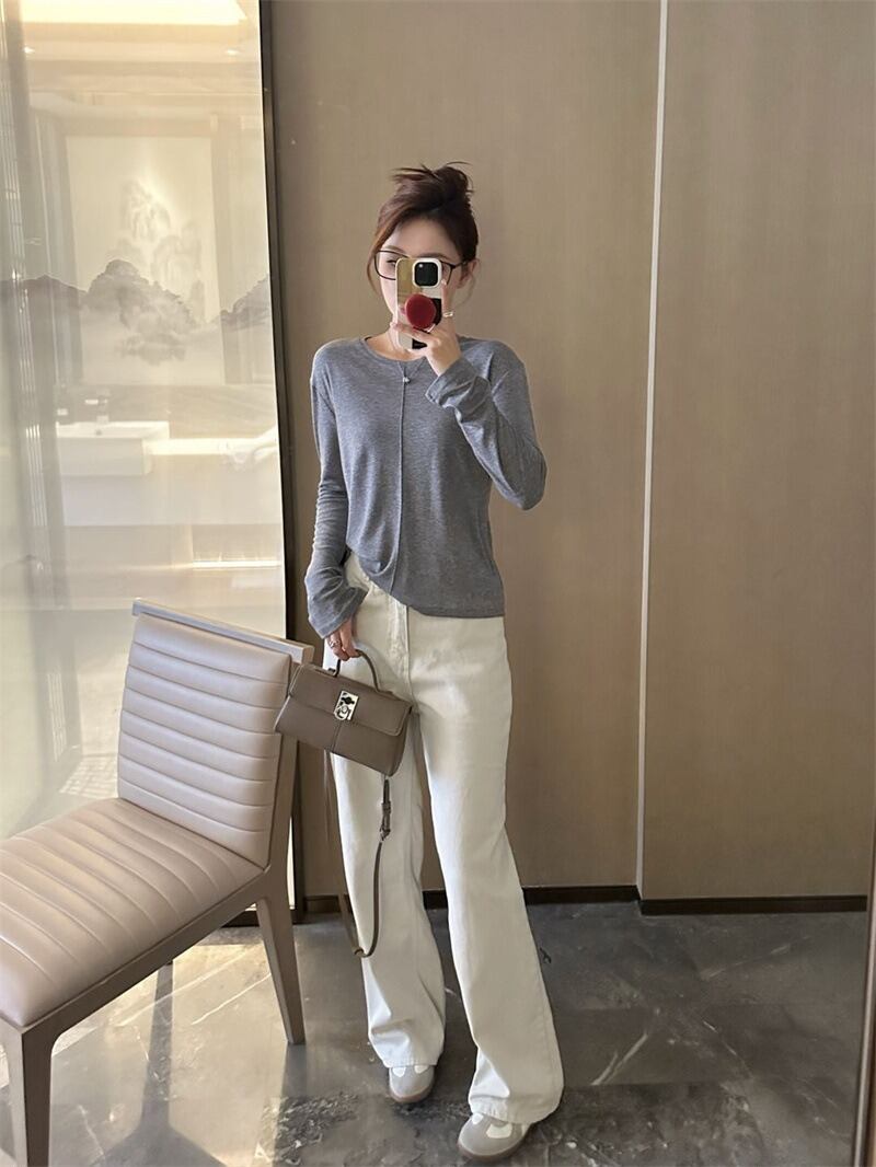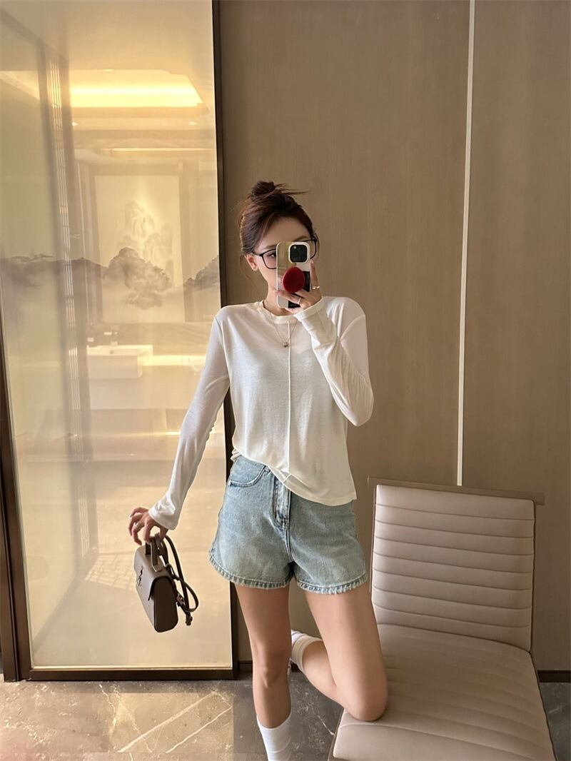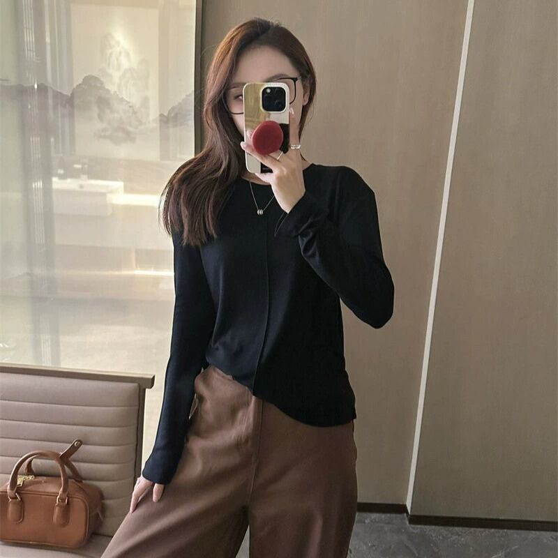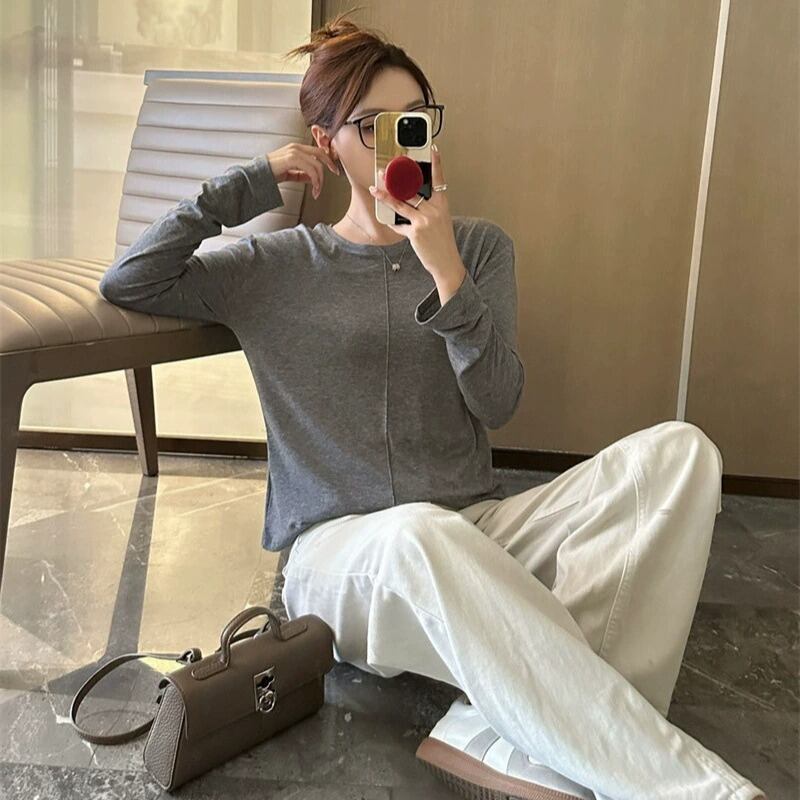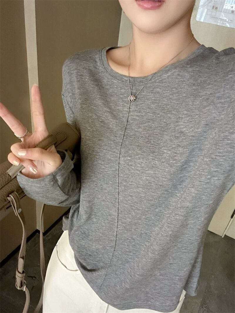 ラウンドネックデザインと薄手の素材感で、春や秋のデイリーユースにぴったりなアイテムです。
