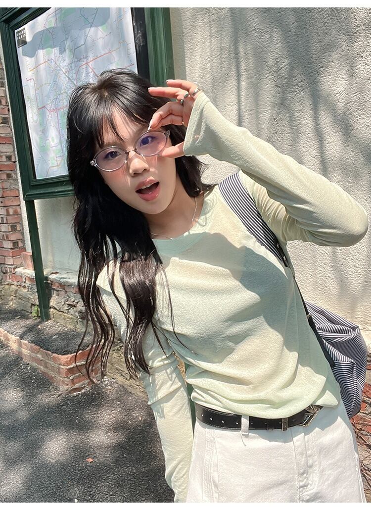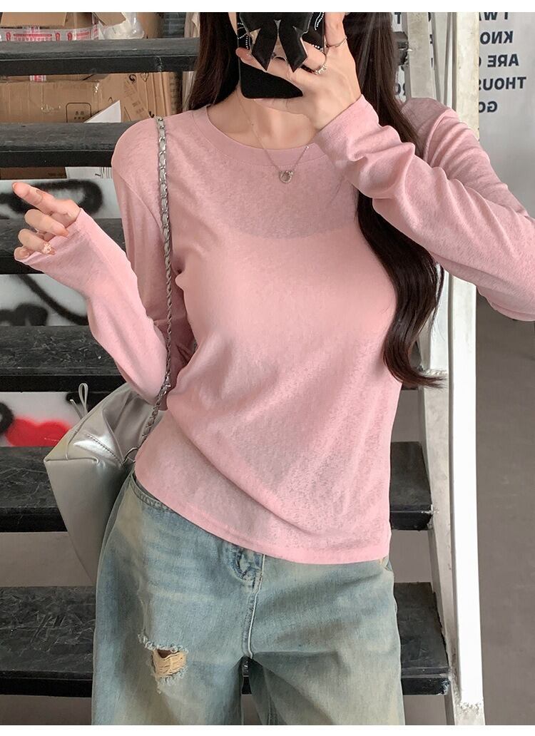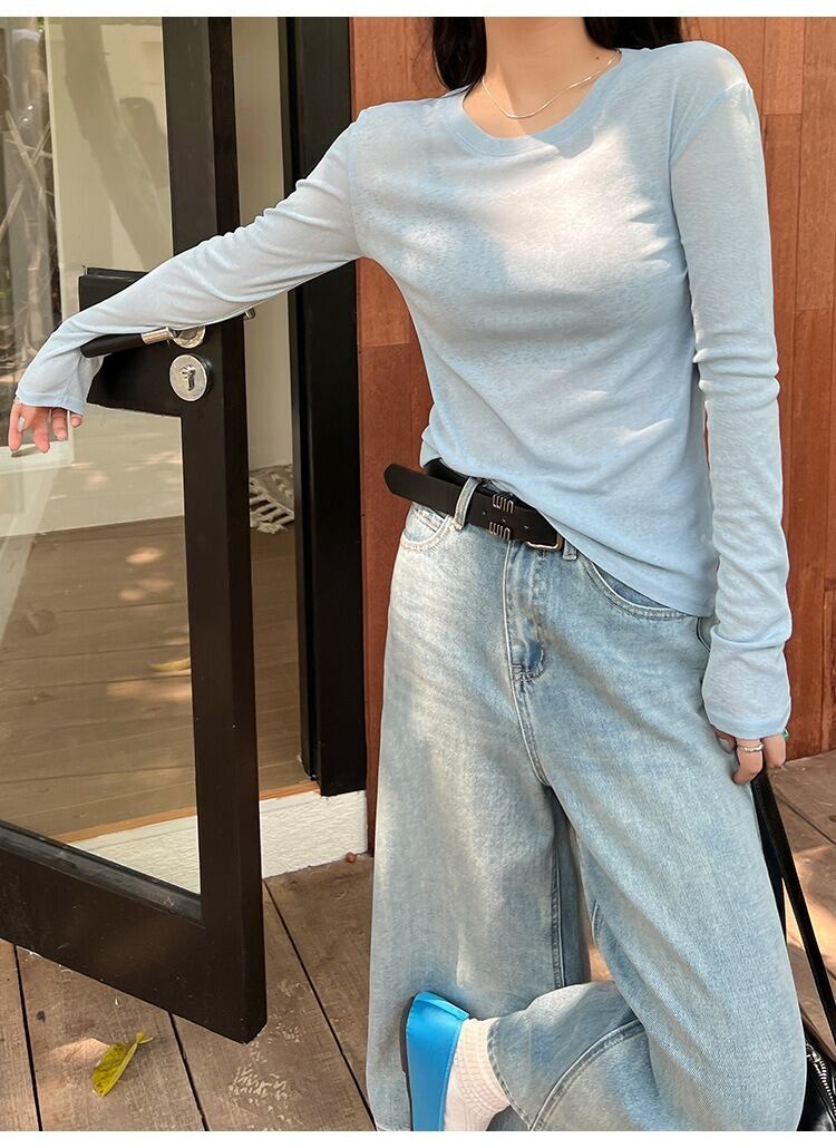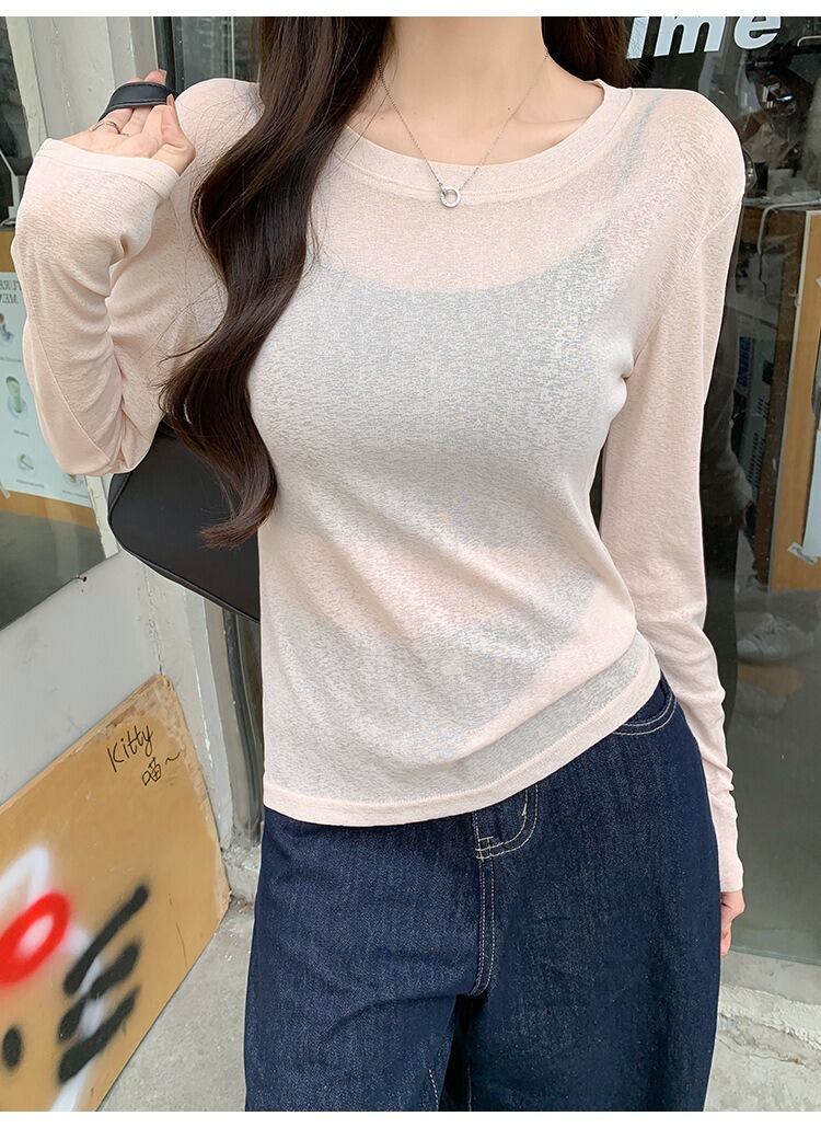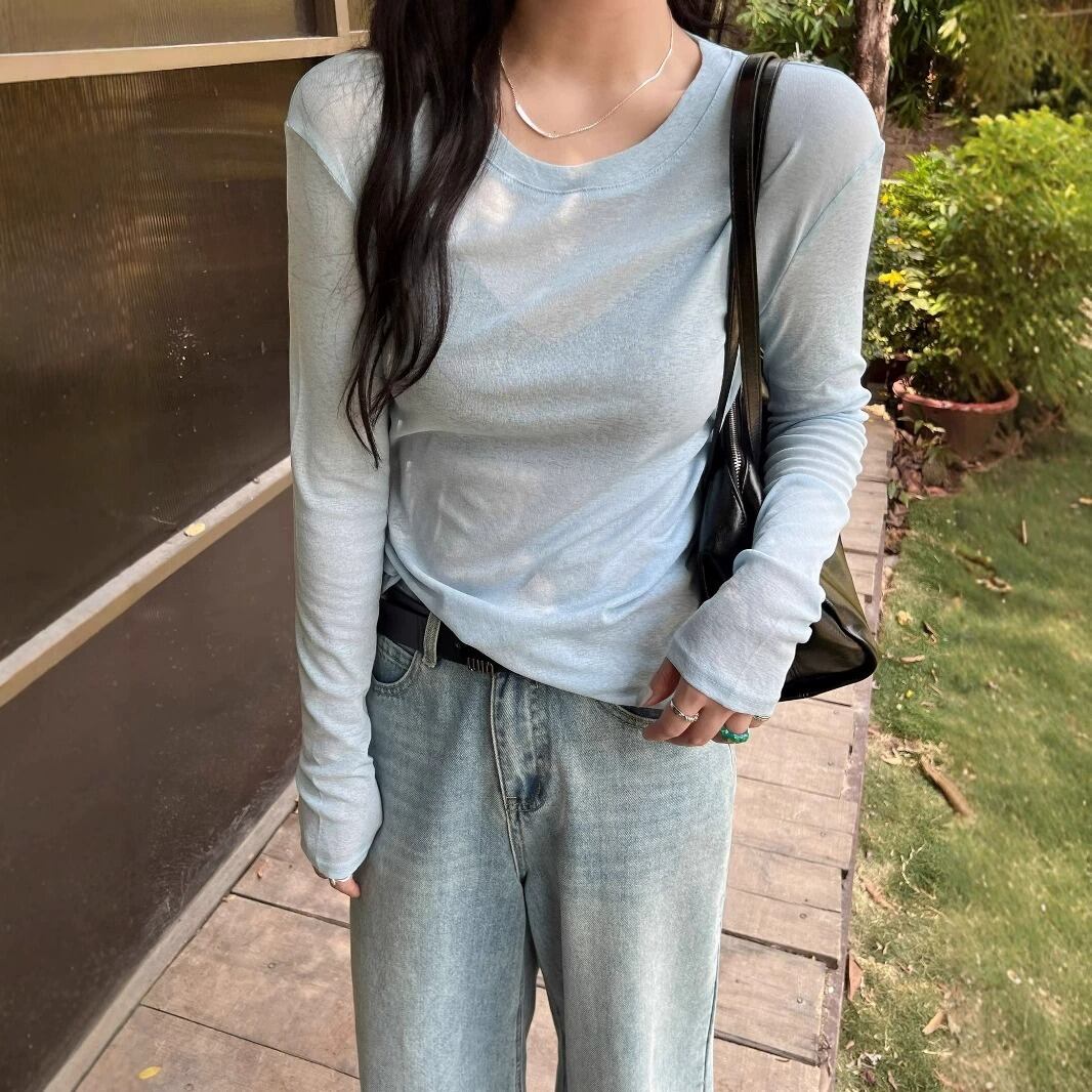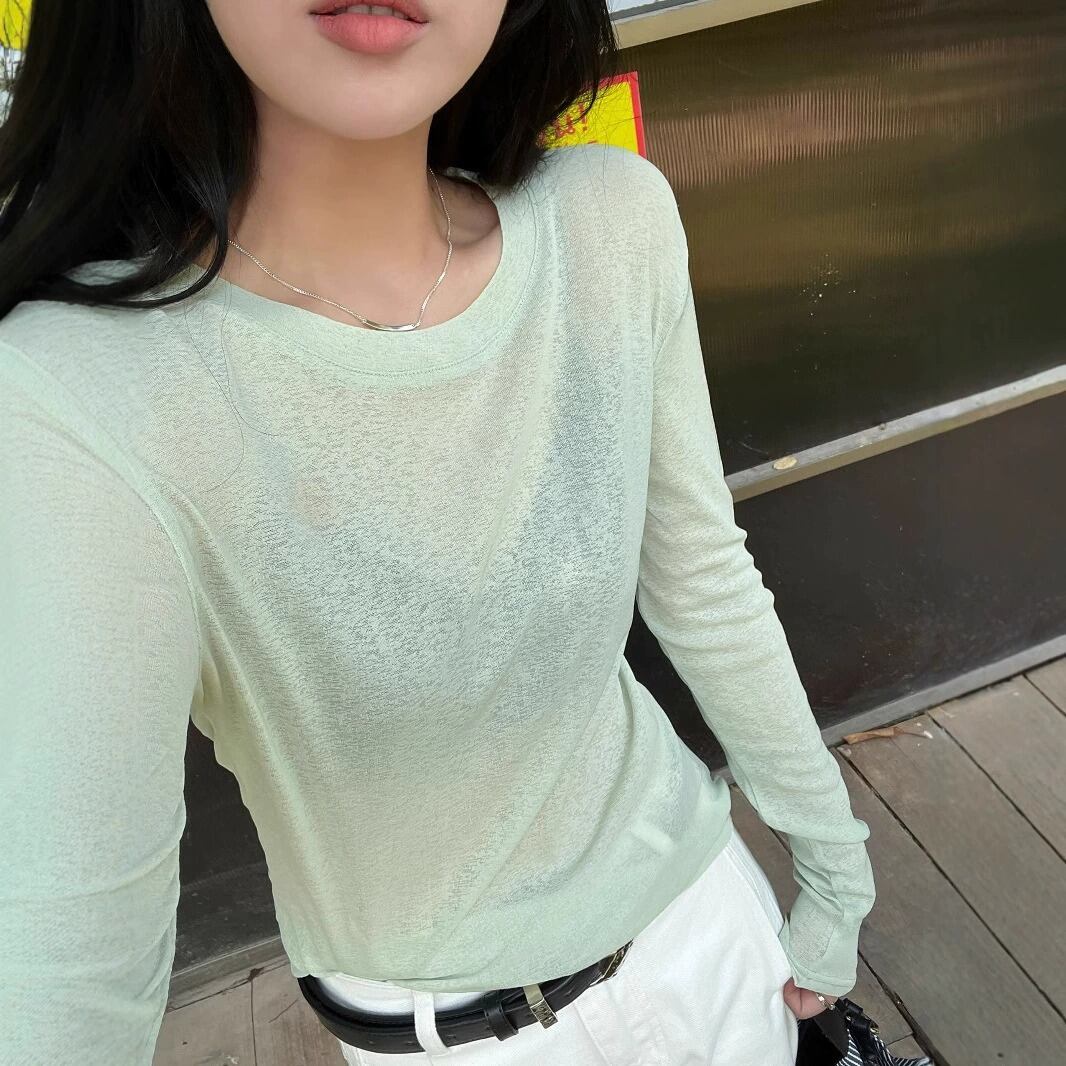 ラウンドネックデザインと薄手素材が特徴で、春や夏のデイリーユースに最適な一着です。