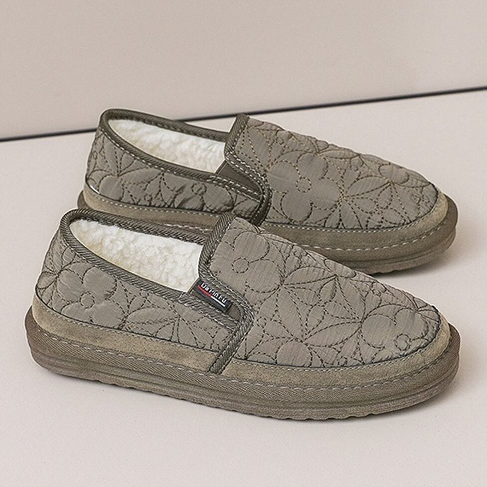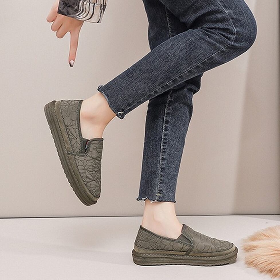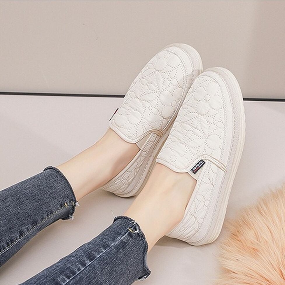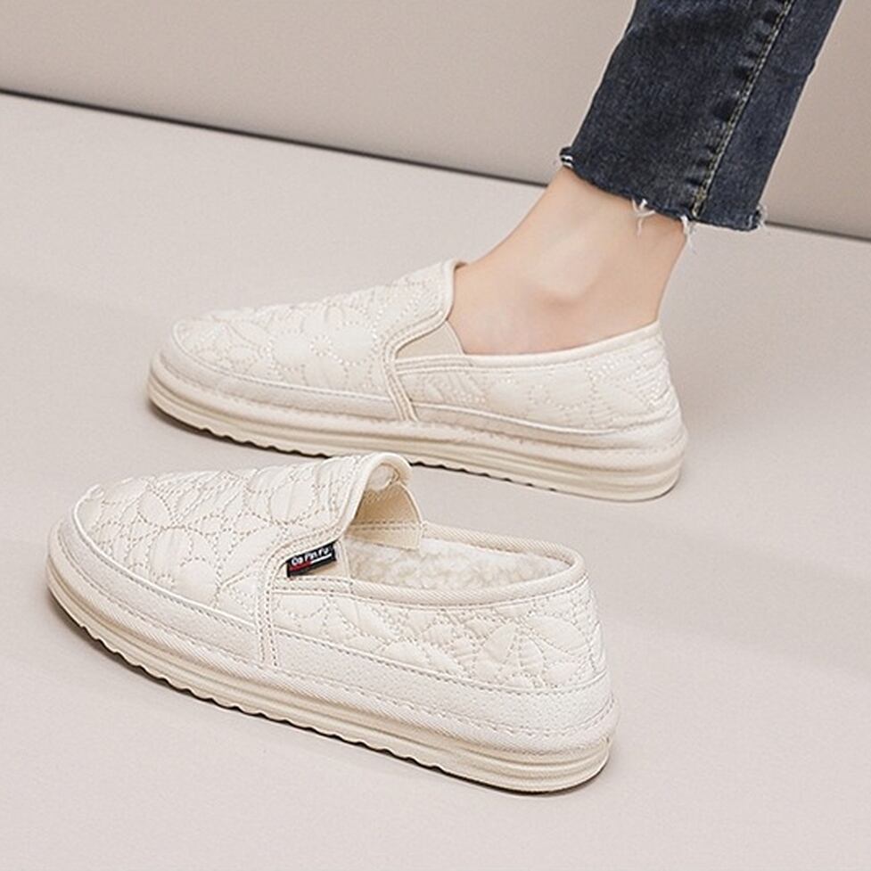 花柄のステッチがレトロでおしゃれを引き立てる履きやすさ抜群で使いやすいシューズ。