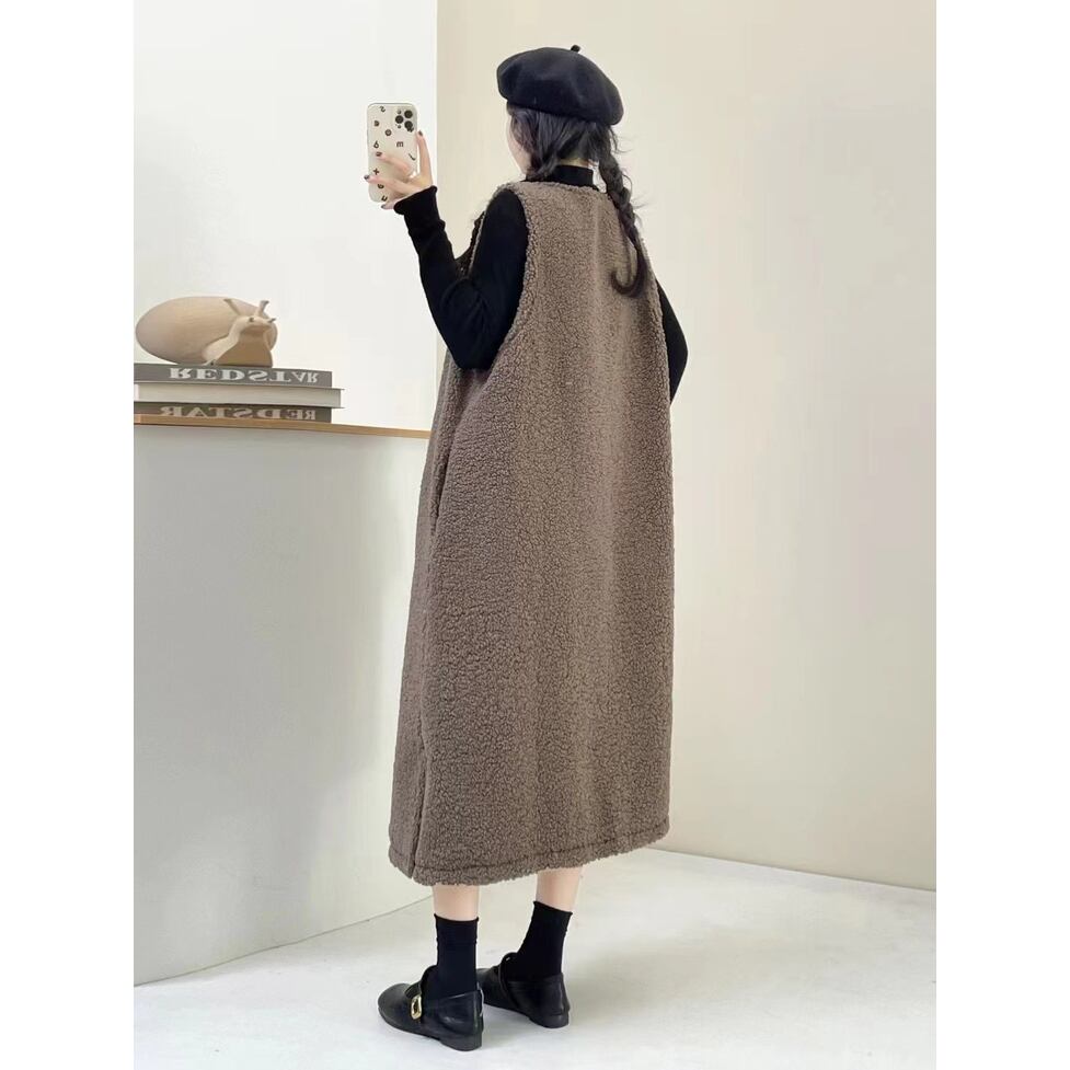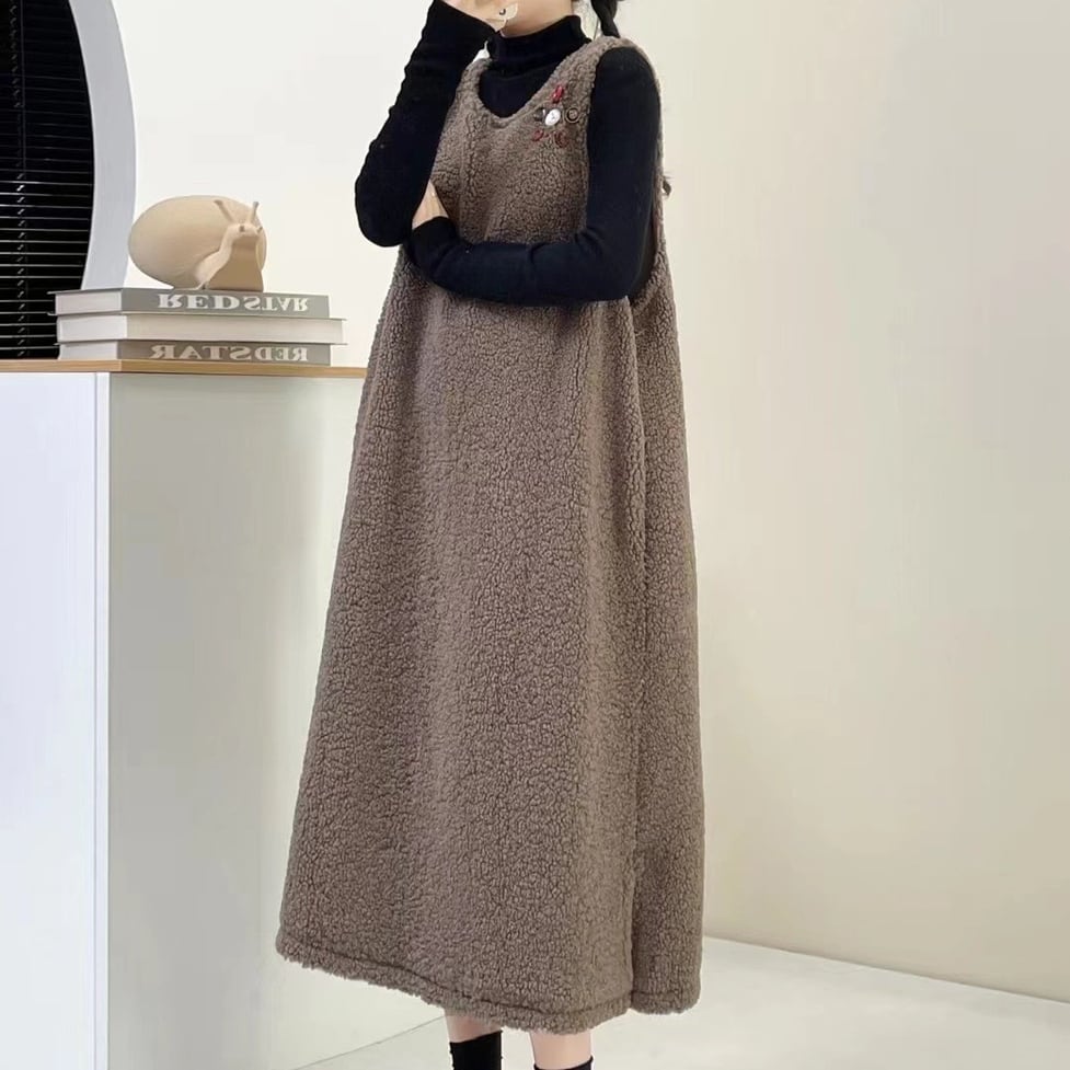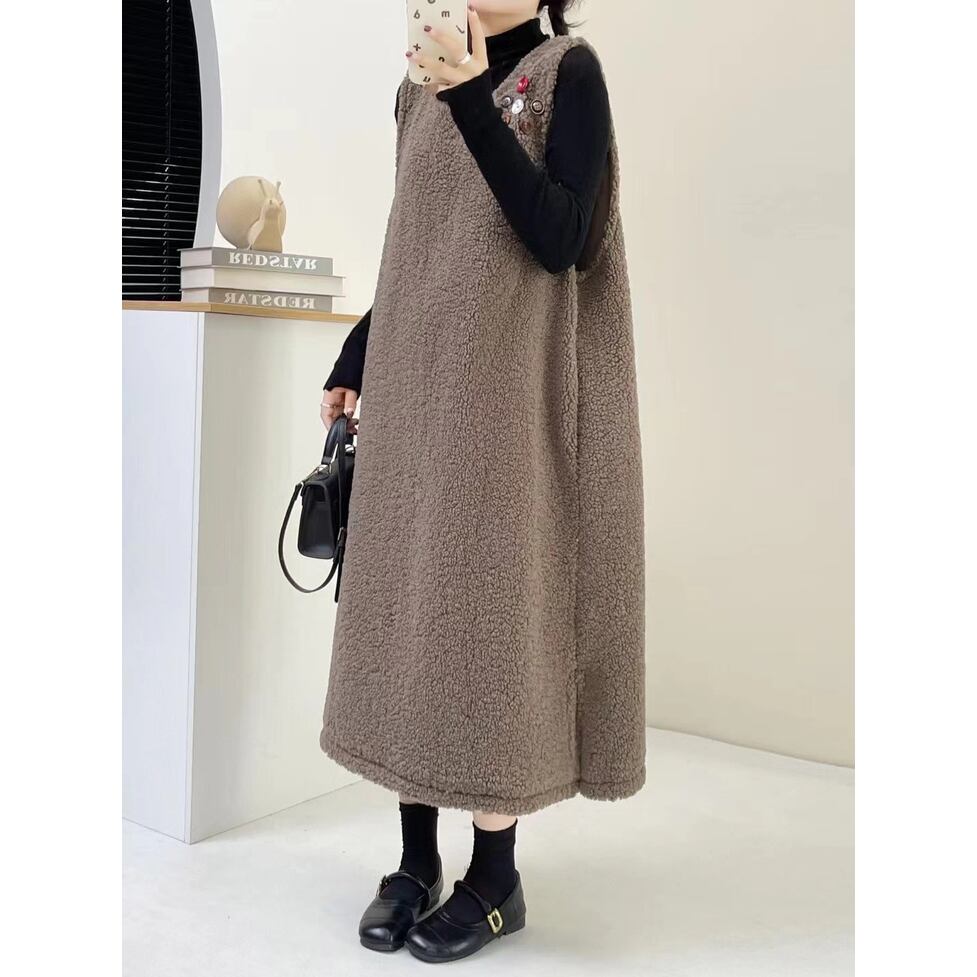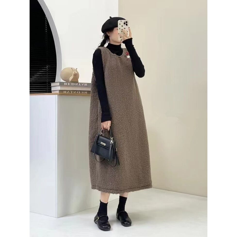 ワンショルダー下のボタンがアクセントになったもこもこニットが可愛いノースリーブオーバーワンピース。