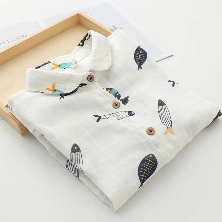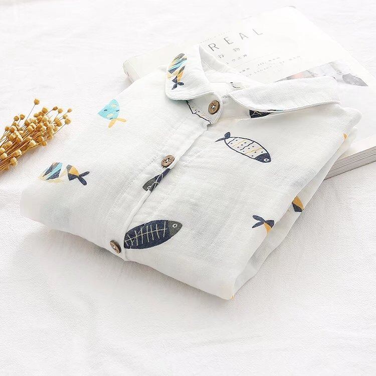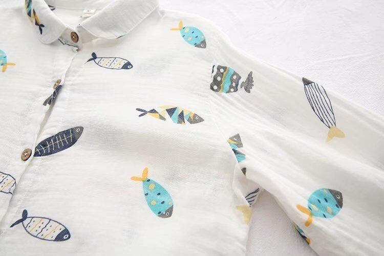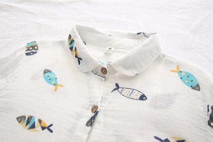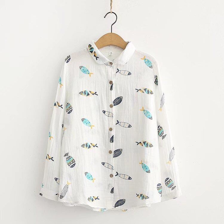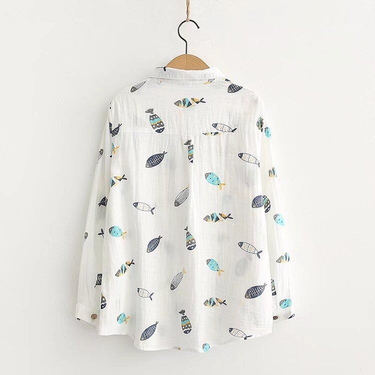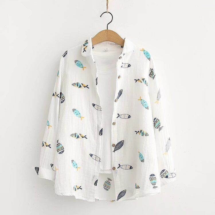 大人可愛い印象を与える魚柄のレディースシャツです!