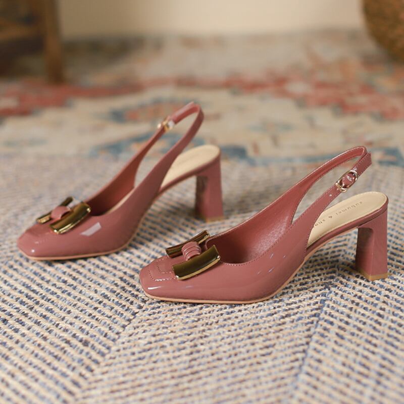 エレガントさと可愛らしさを兼ね備えたサンダルです。太ヒール6cmのデザインが安定感を与えつつ、スクエアトゥが全体のシルエットをスタイリッシュに演出、美脚効果を引き出す一足です。様々なシーンにぴったりで幅広く活用できます。