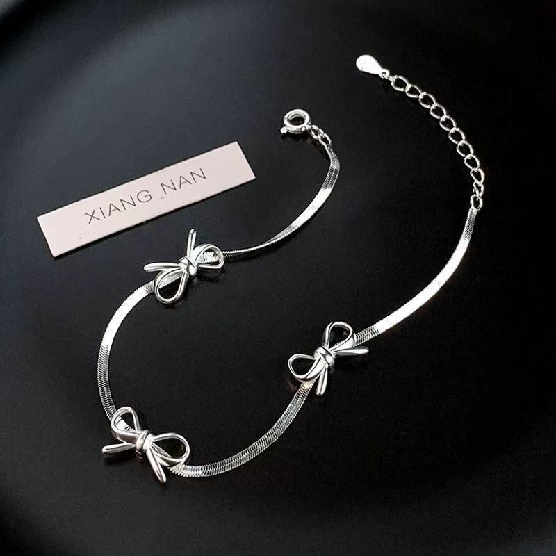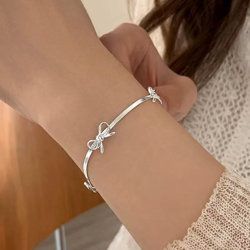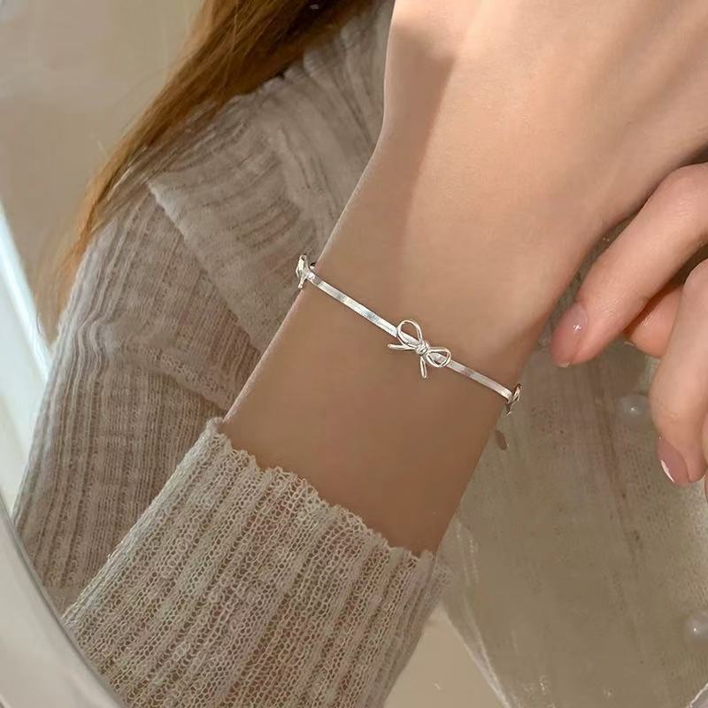 お出かけやデート、女子会、旅行、お買い物など、あらゆるシーンでの着用が楽しめるリボンチャームが可愛らしいブレスレット。