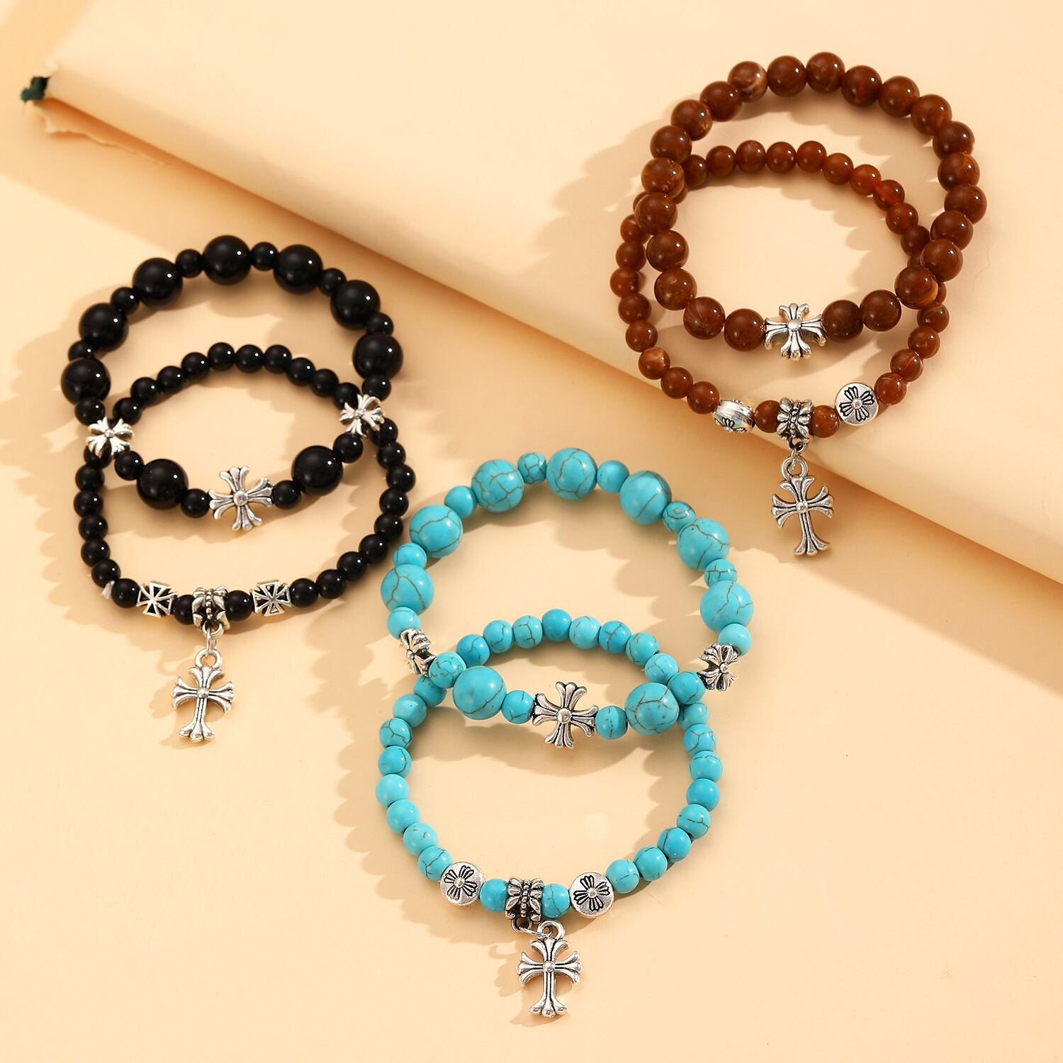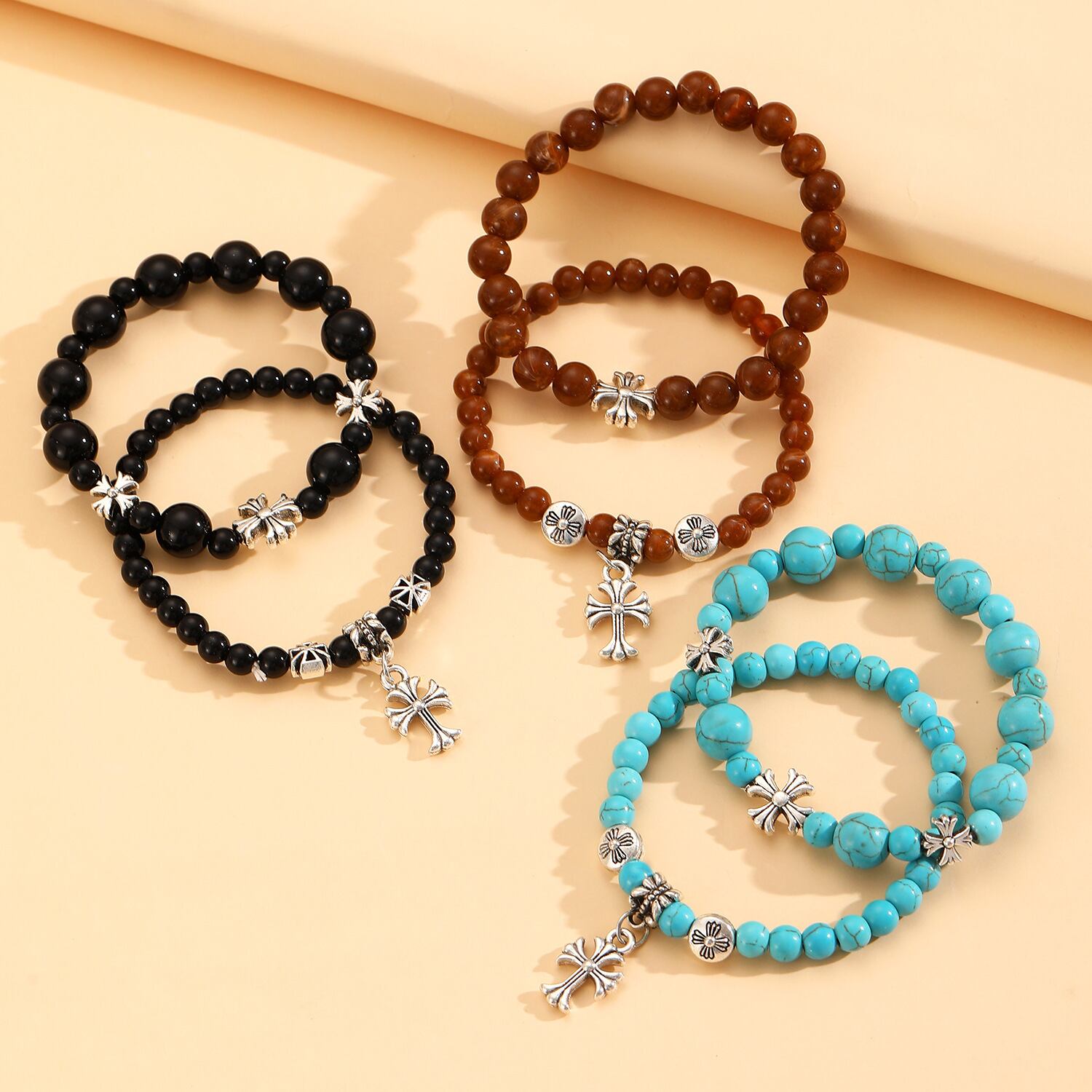 カジュアルにもクールにも決まる、個性的なデザインで普段使いはもちろん、さまざまなシーンで大活躍するブレスレット2点セットです。