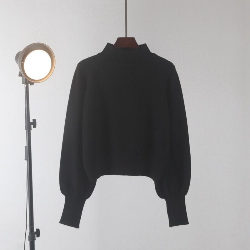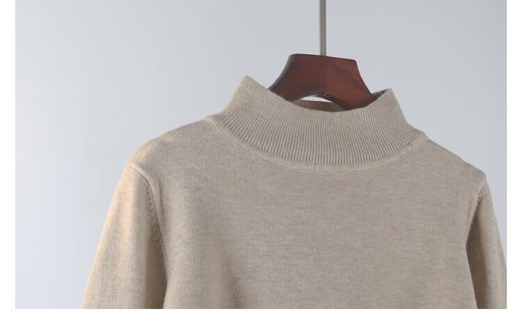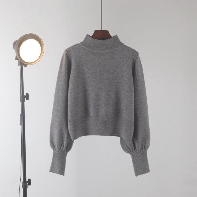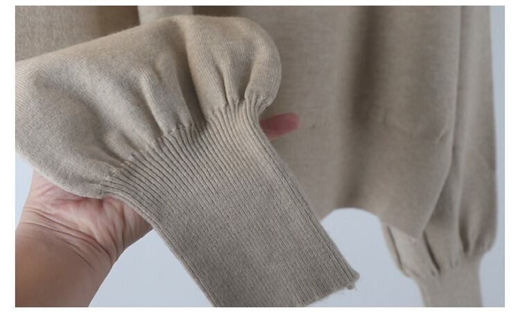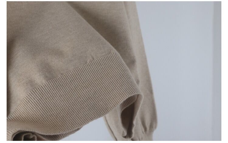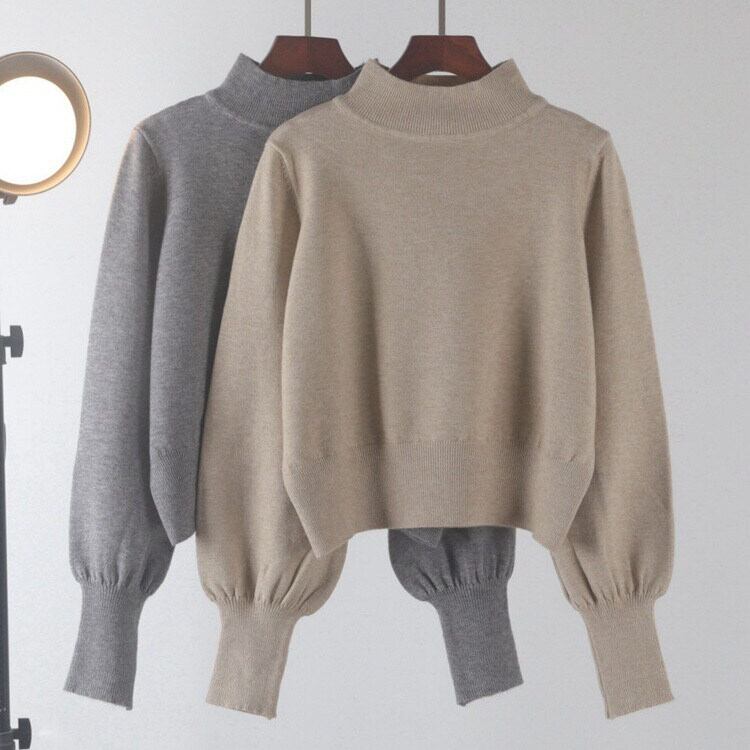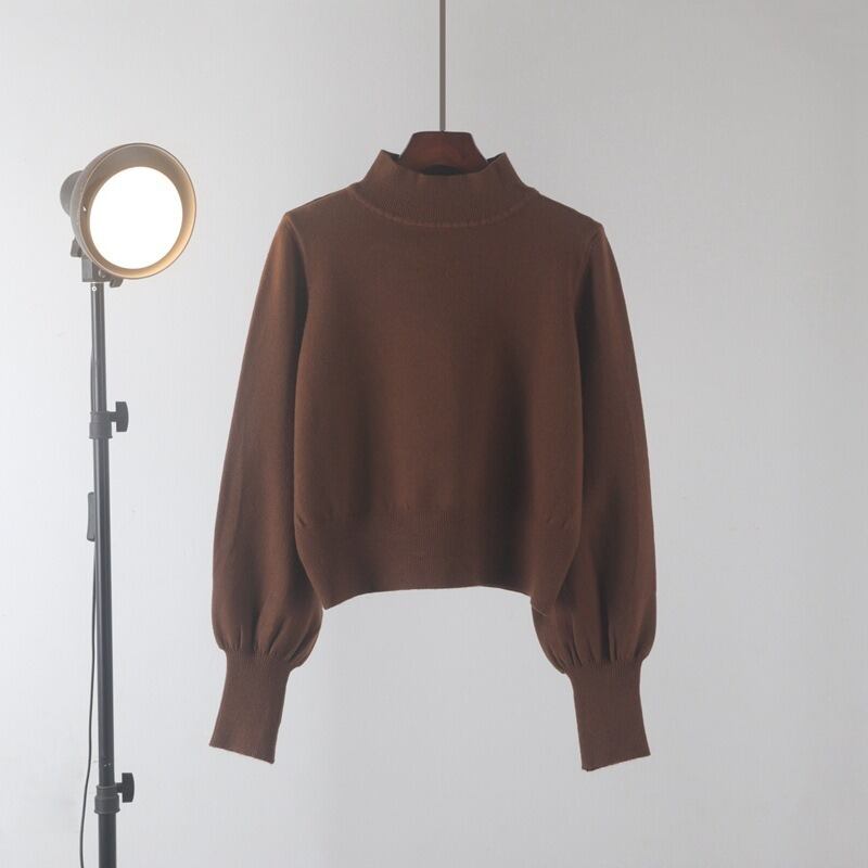 ハイネックとカフスリーブの組み合わせが大人可愛い印象を引き立てる、レディースニットセーターです。