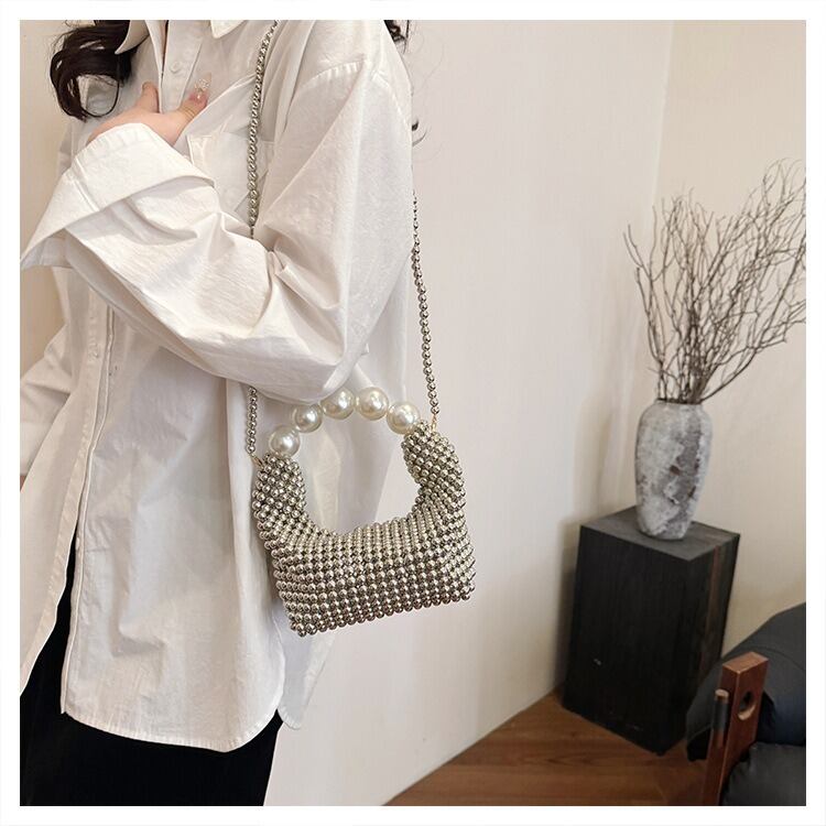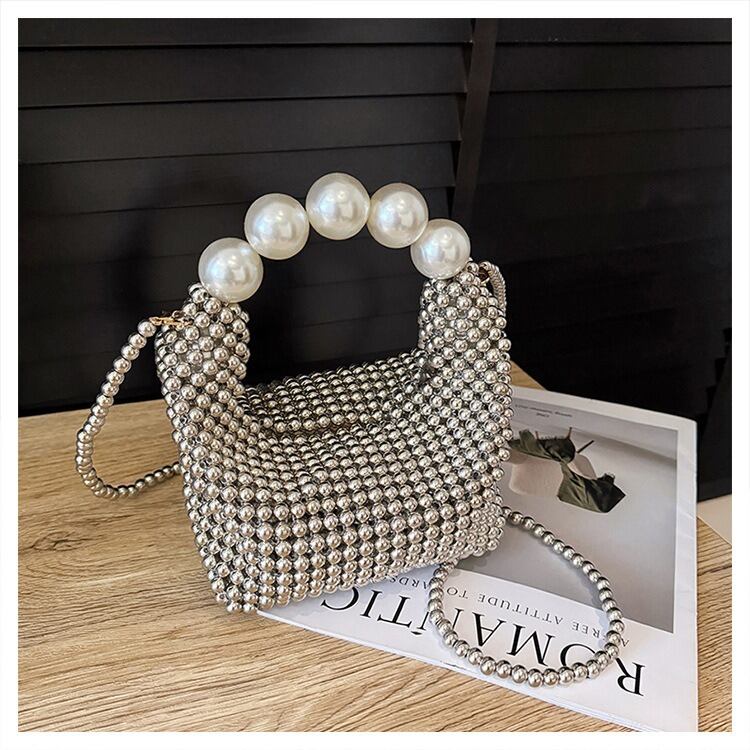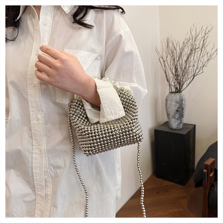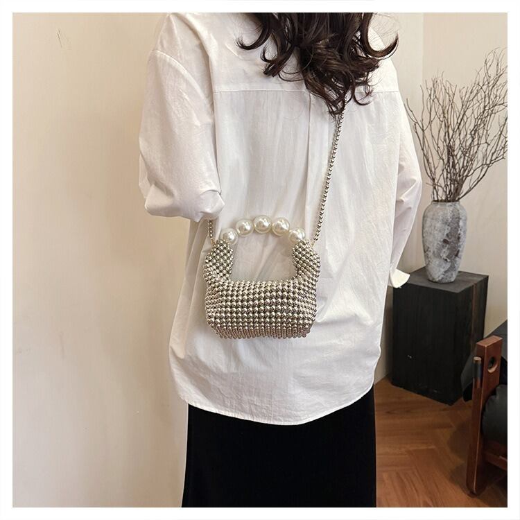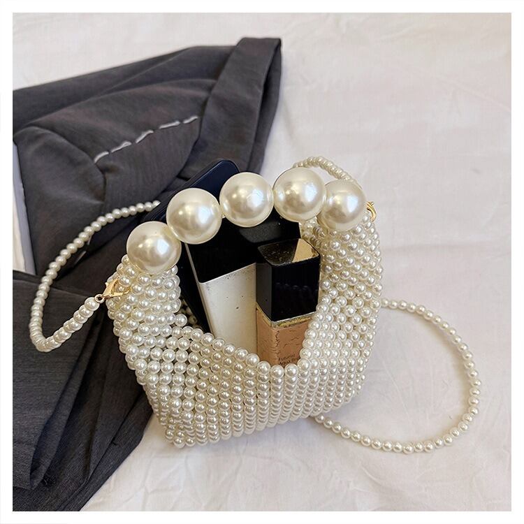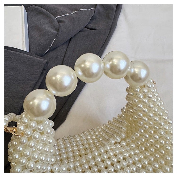 スクエア型のフォルムに施されたパール装飾が、エレガントな華やかさを演出します。