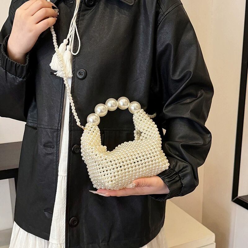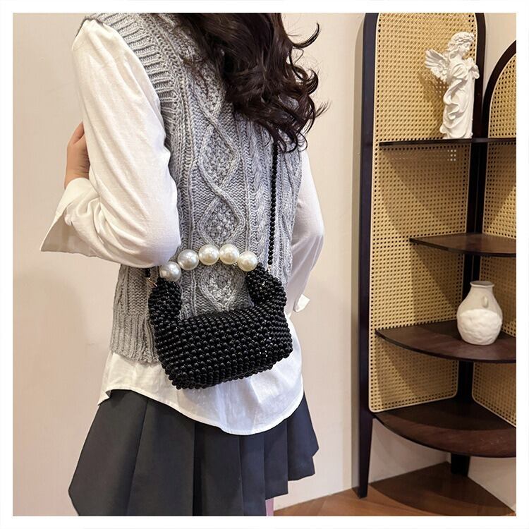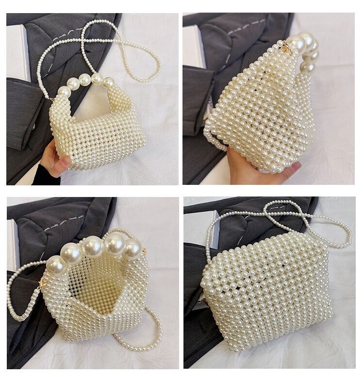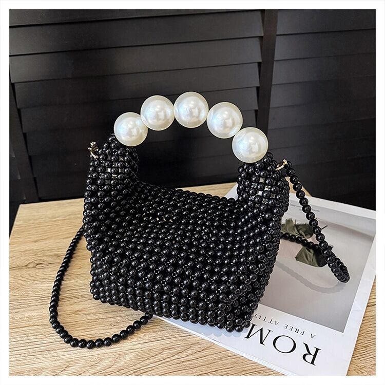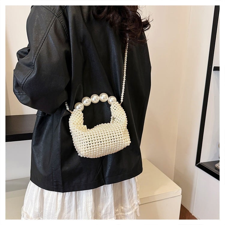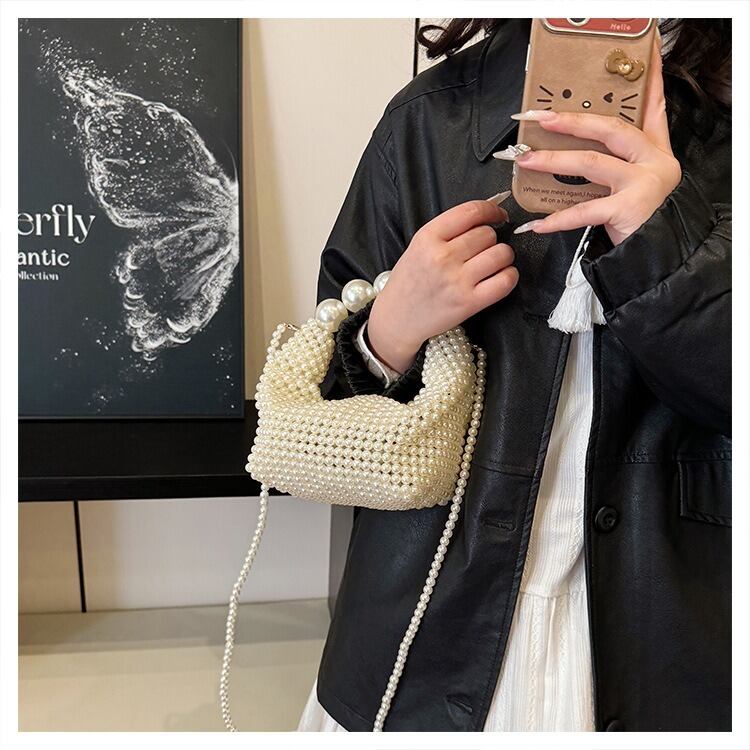 スクエア型のフォルムに施されたパール装飾が、エレガントな華やかさを演出します。