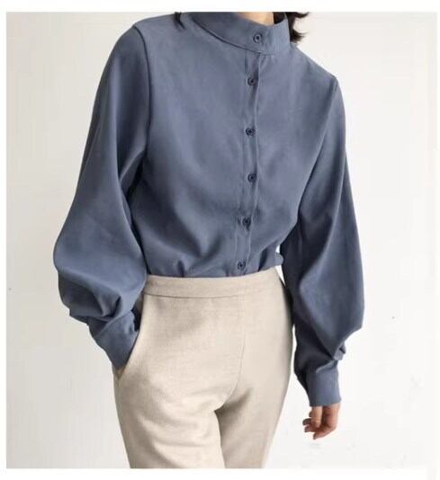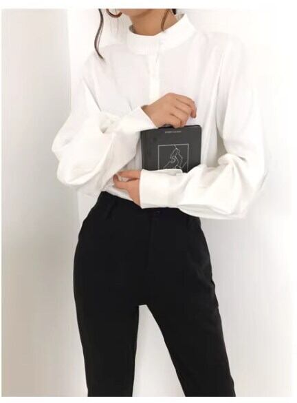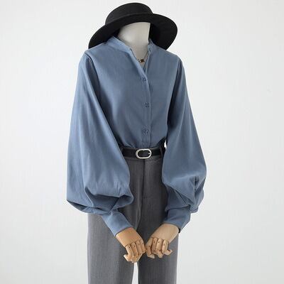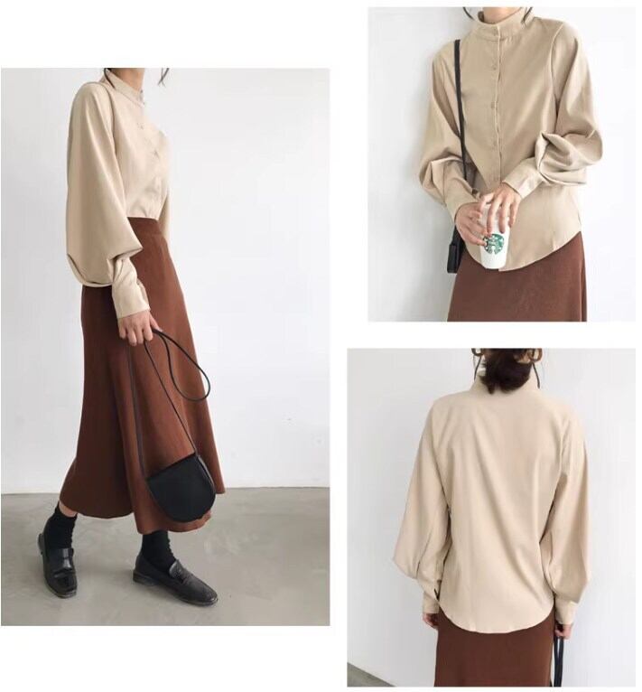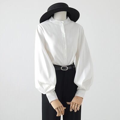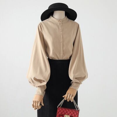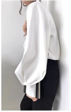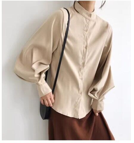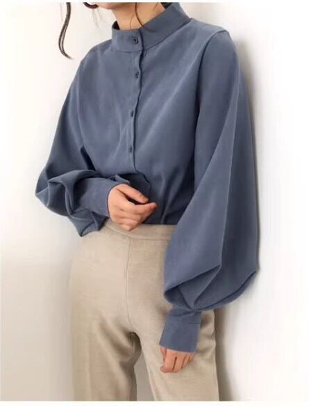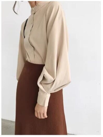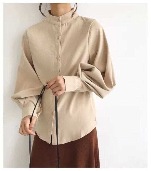 ボリューム袖やスタンドカラーといったデザインで、フェミニンさとこなれ感を見事に両立。