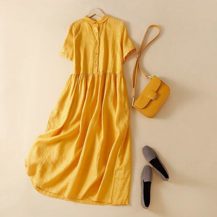 カラーバリエーション豊富なラウンドカラーワンピース。
