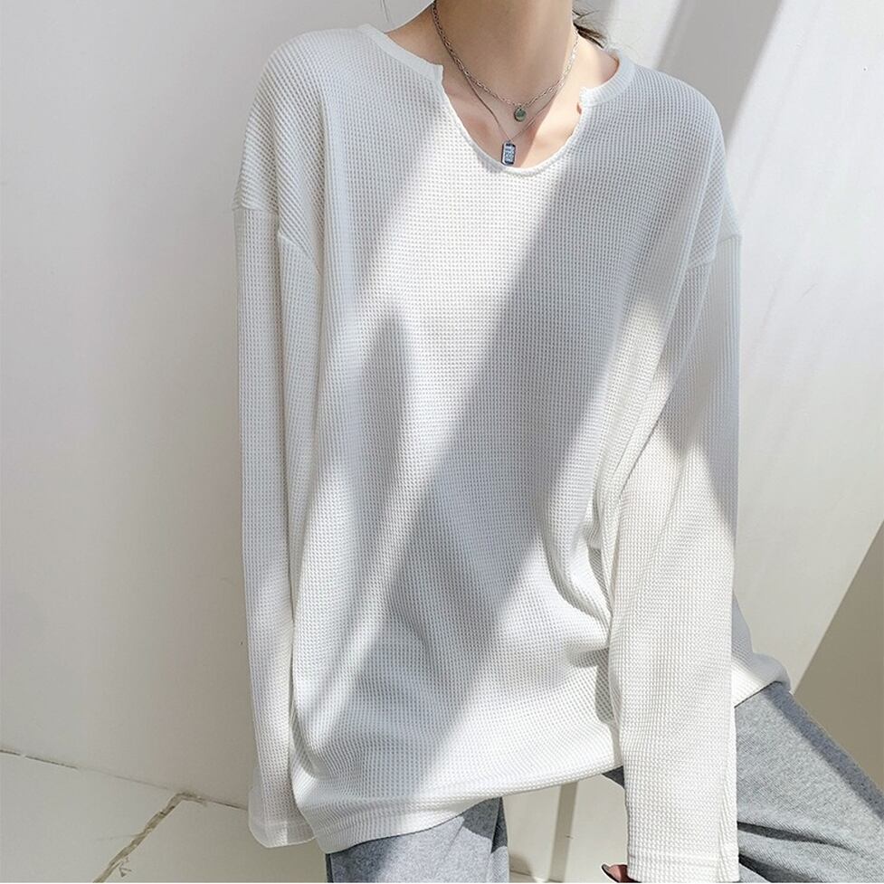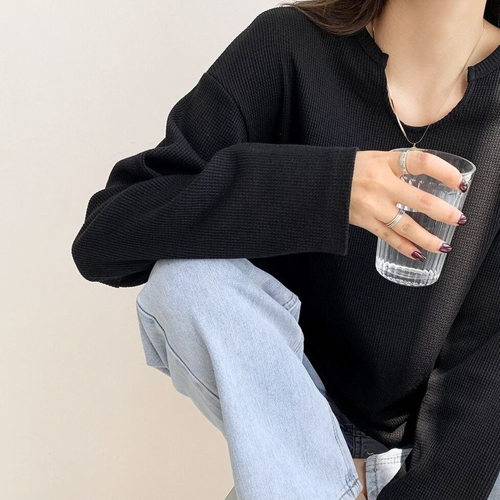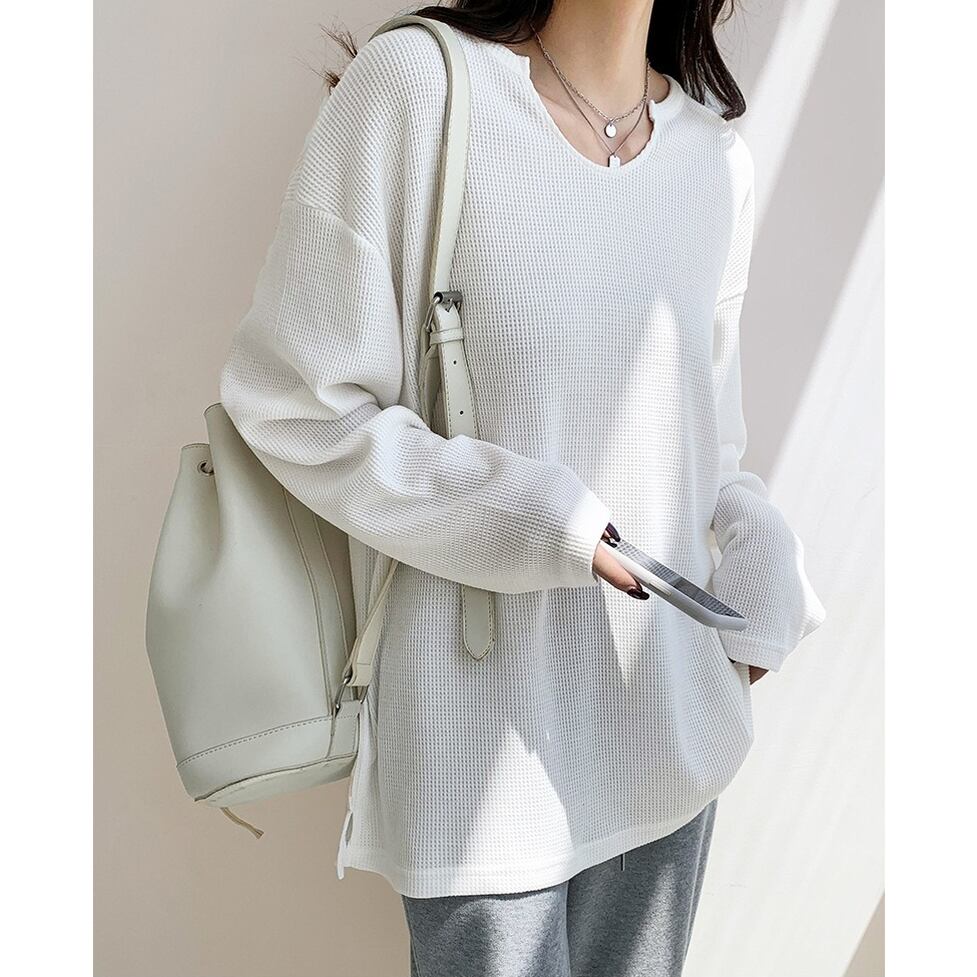 涼しげなワッフル素材とこなれたネックラインが大人の魅力を引き出してくれるシャツ。