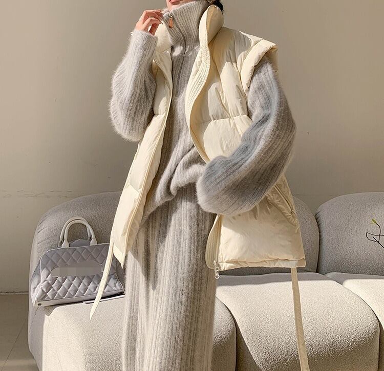 ゆったりとしたシルエットでリラックス感がありつつ、縦ラインのリブ編みで細見え効果も◎