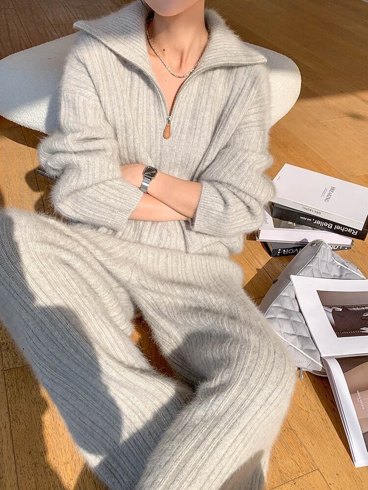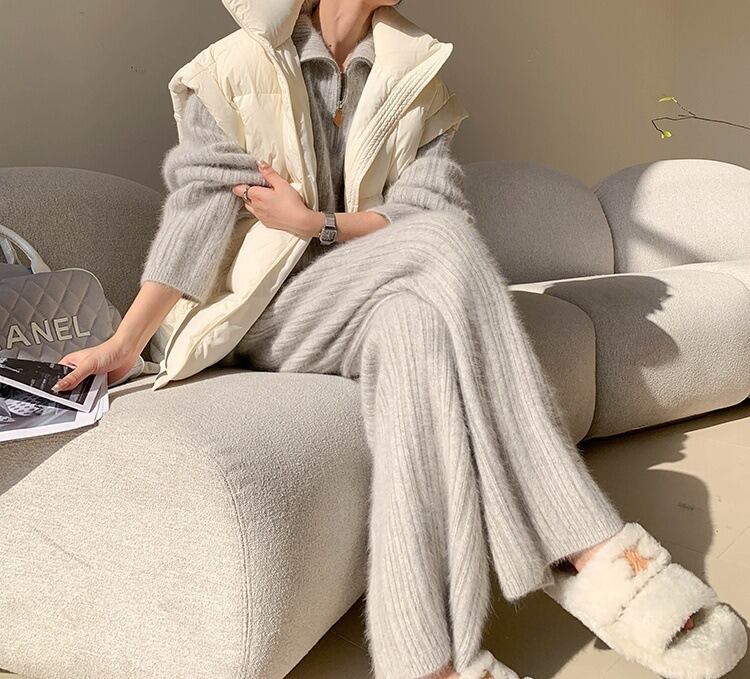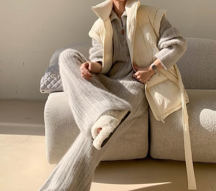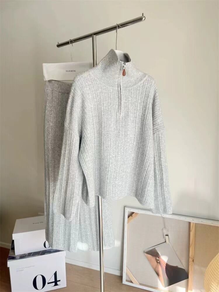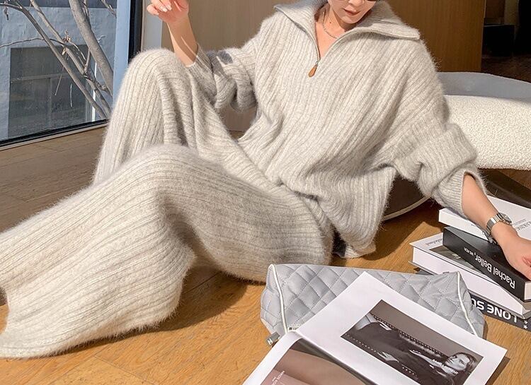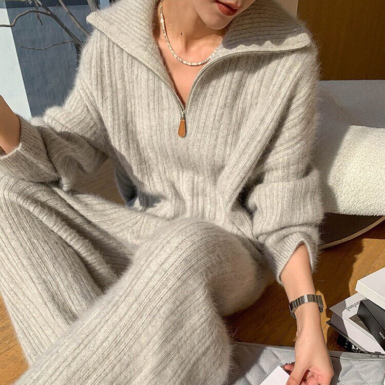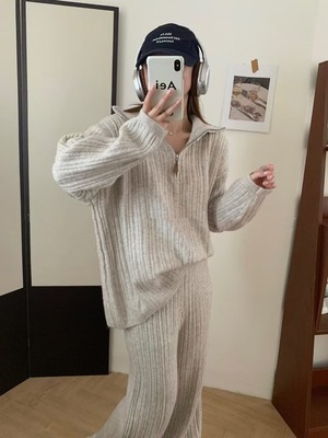 やわらかな肌ざわりに包まれる、旬顔ニットのセットアップです。