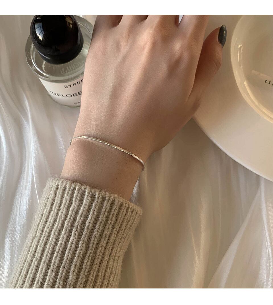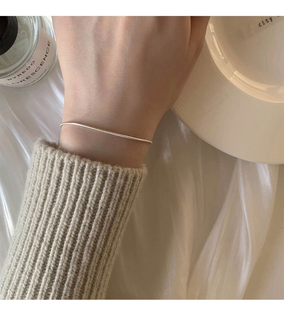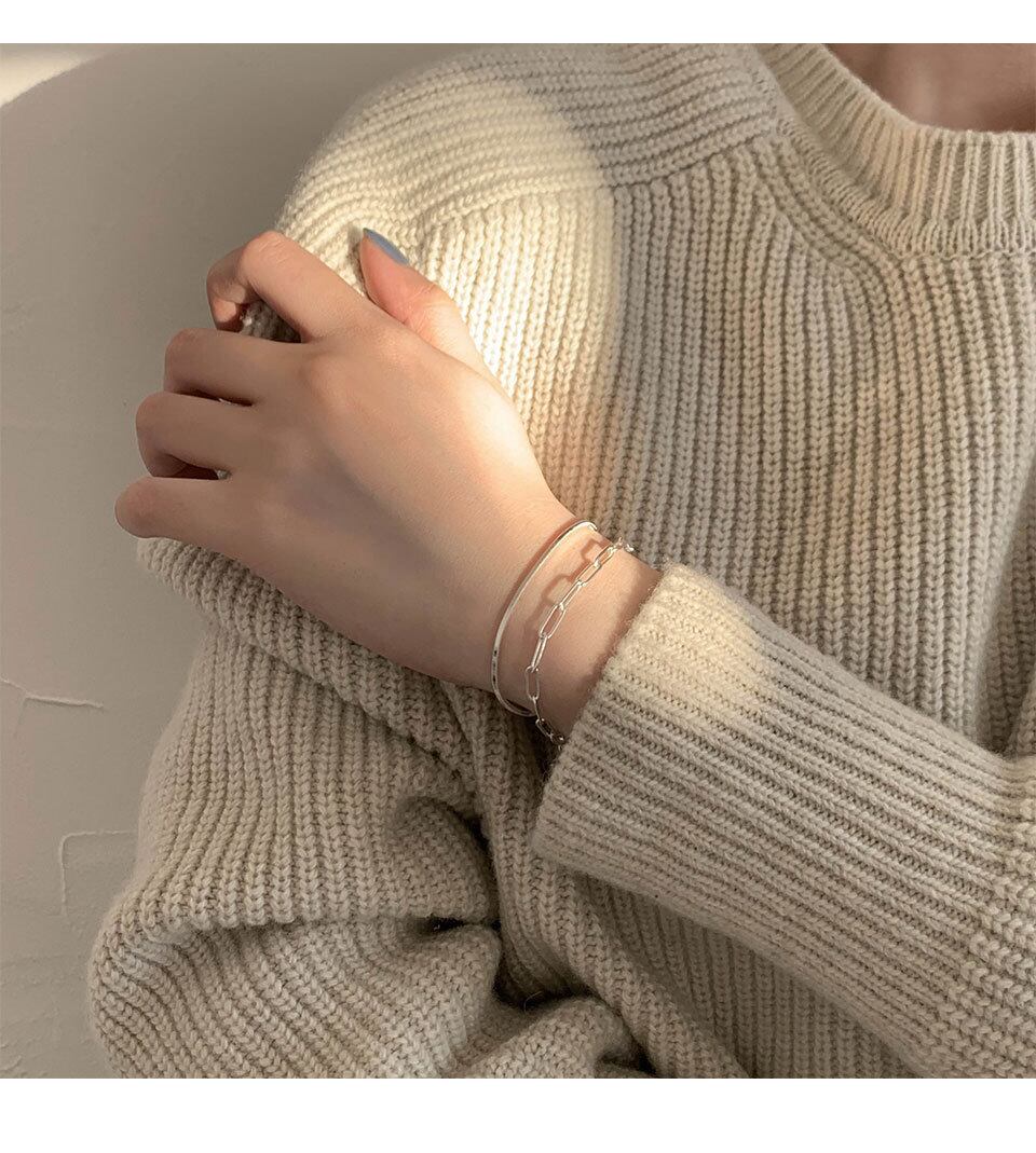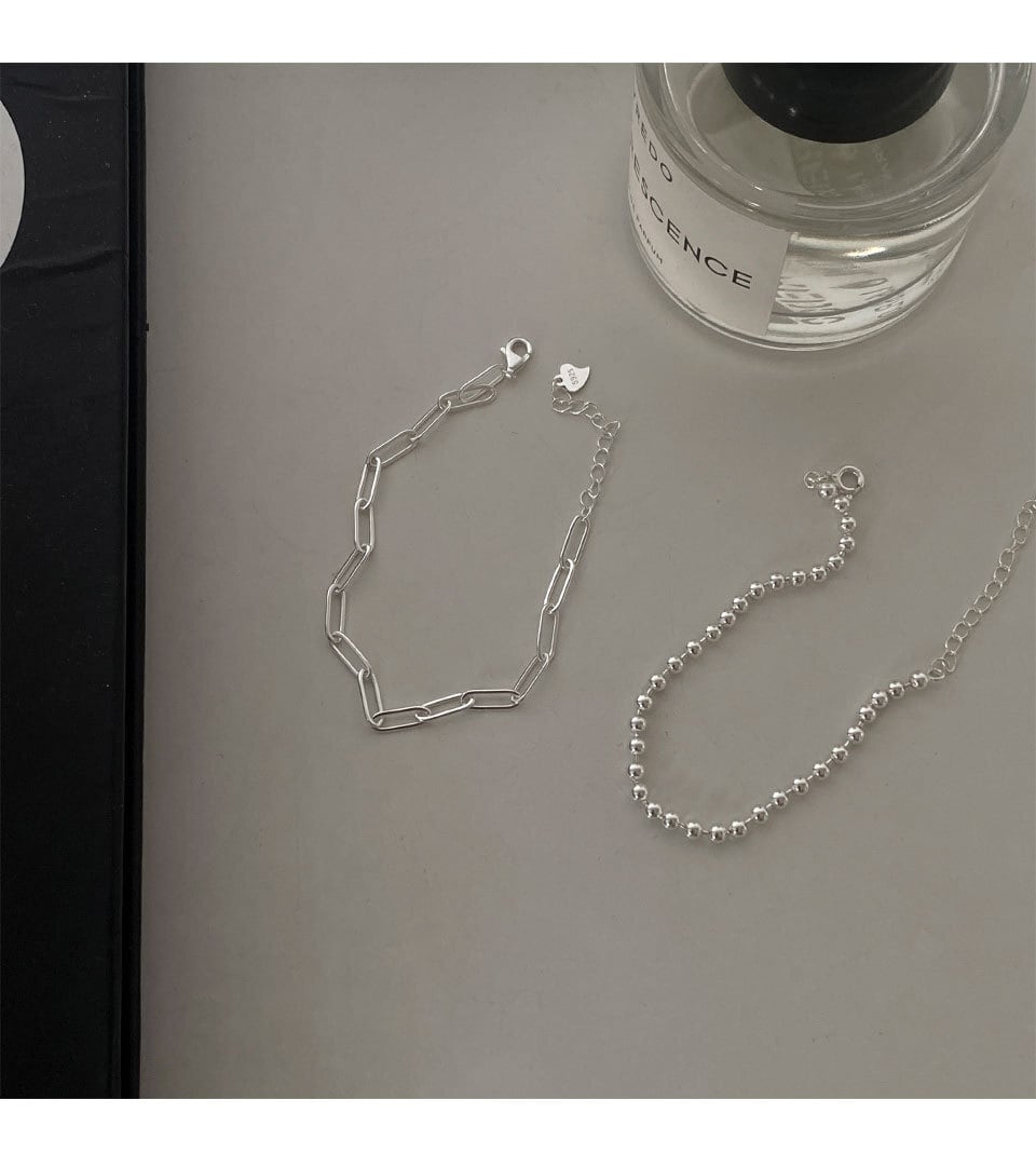 4種類のチェーンタイプからお好みでお選びいただける、シンプルな銀色のブレスレットで抜け感を演出。