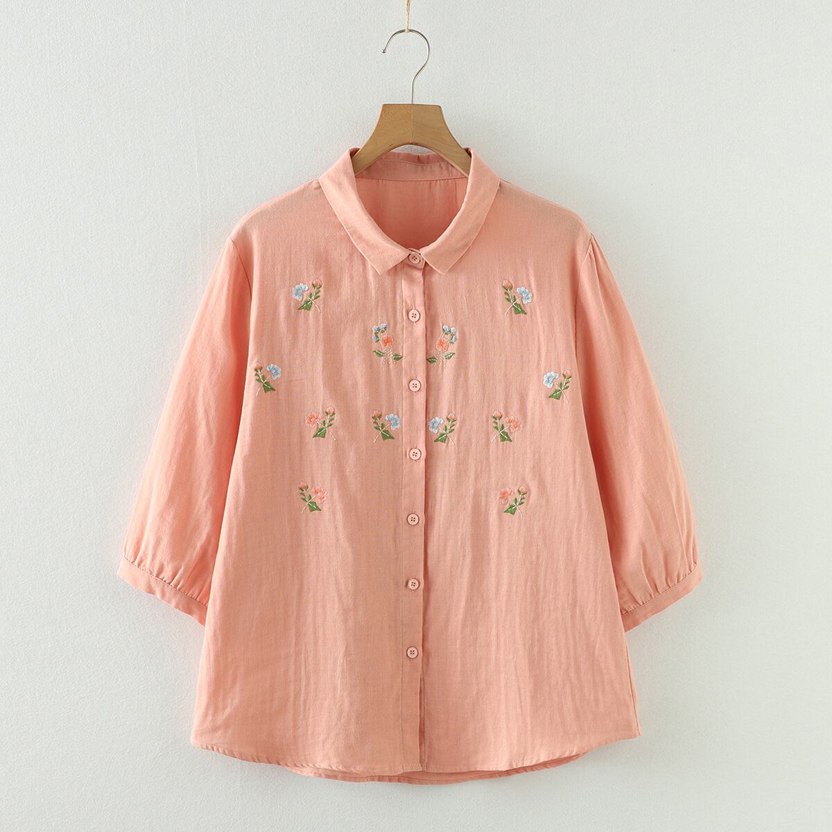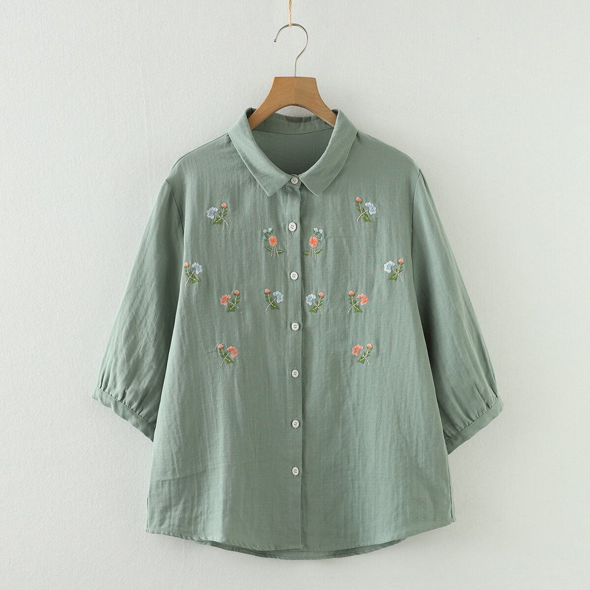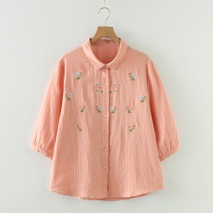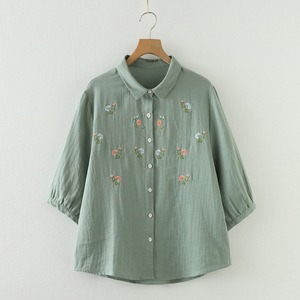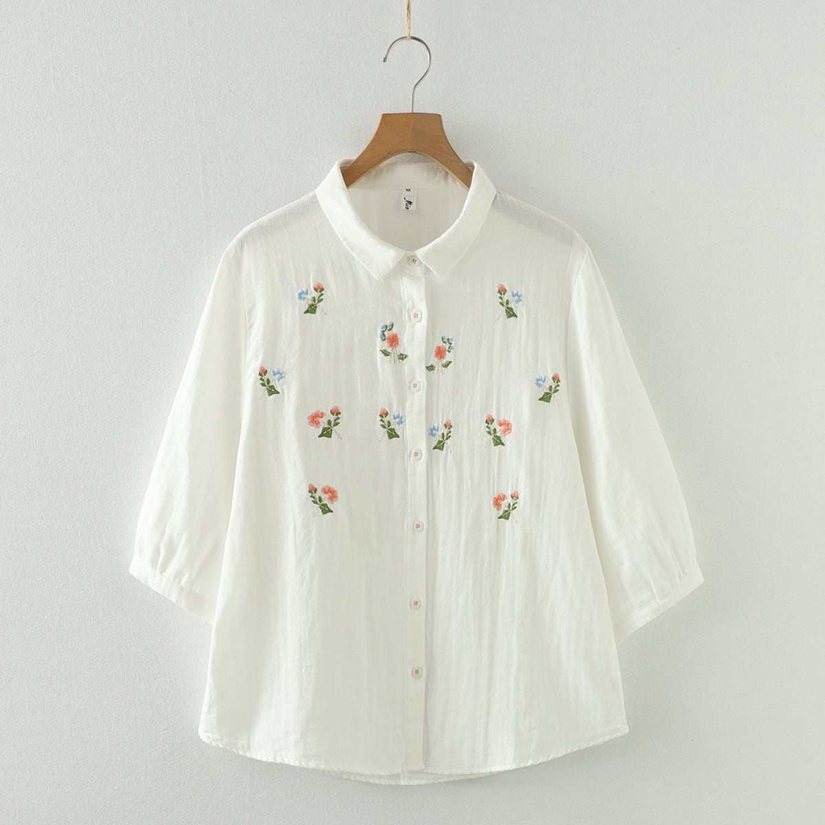 大人可愛い花柄刺繍が魅力の七分袖シャツです。